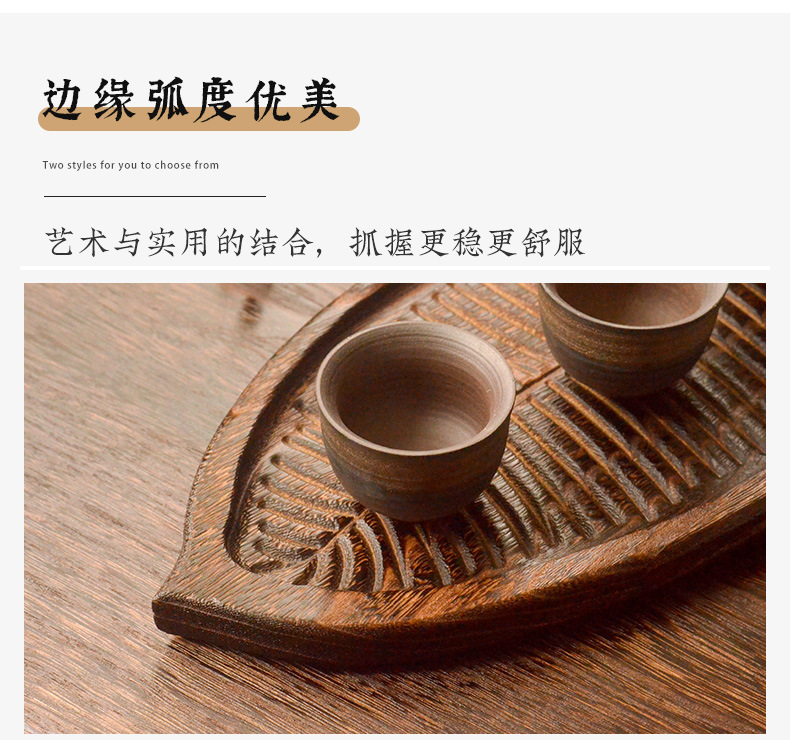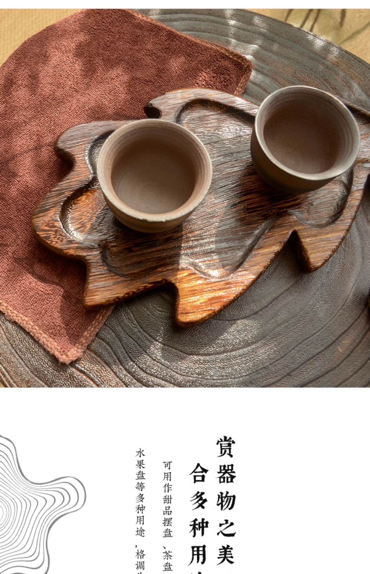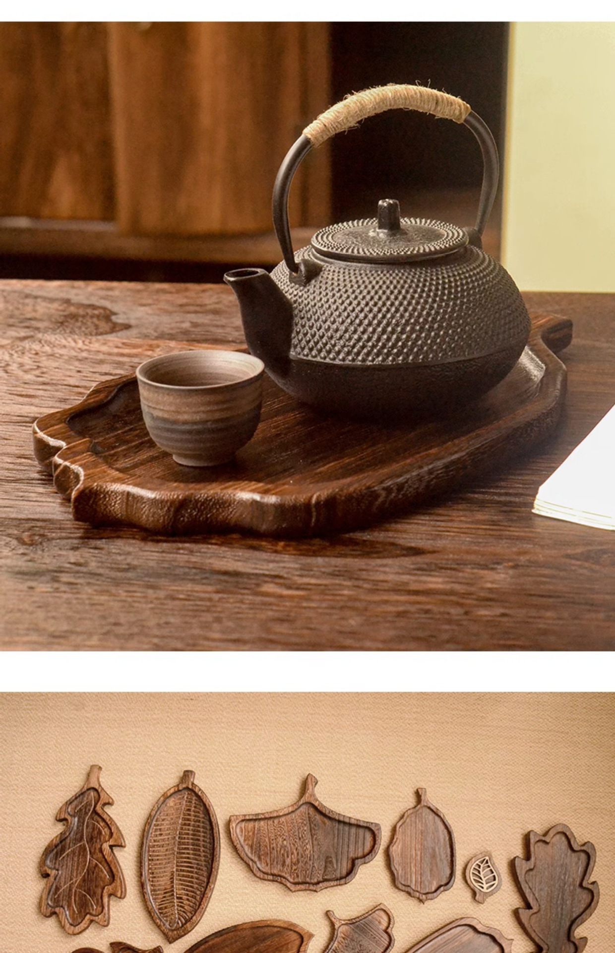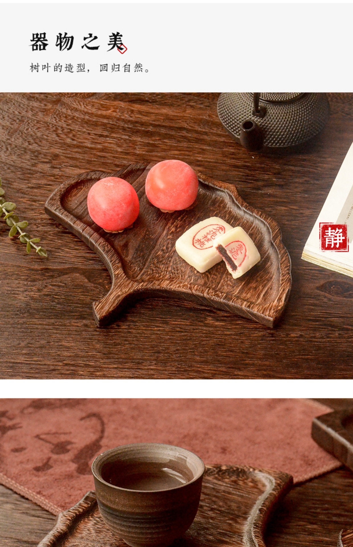 나무 트레이 단단한 과자 과일 트레이 일본식 창작 나뭇잎 드라이 버블 테이블 차 가정용 차 트레이 바나나 잎 나무 트레이 B&