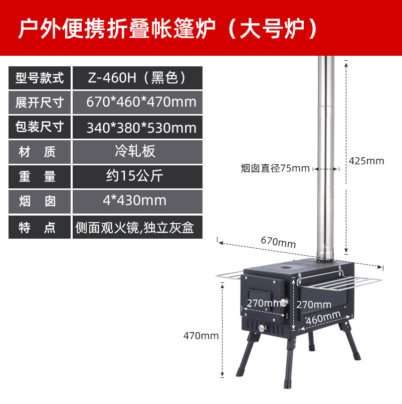 • 대형 검정색 텐트 스토브