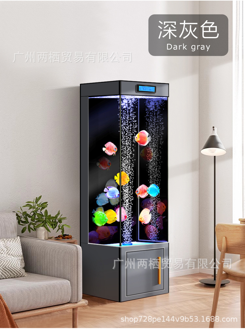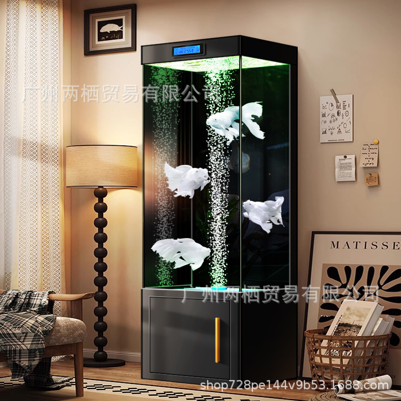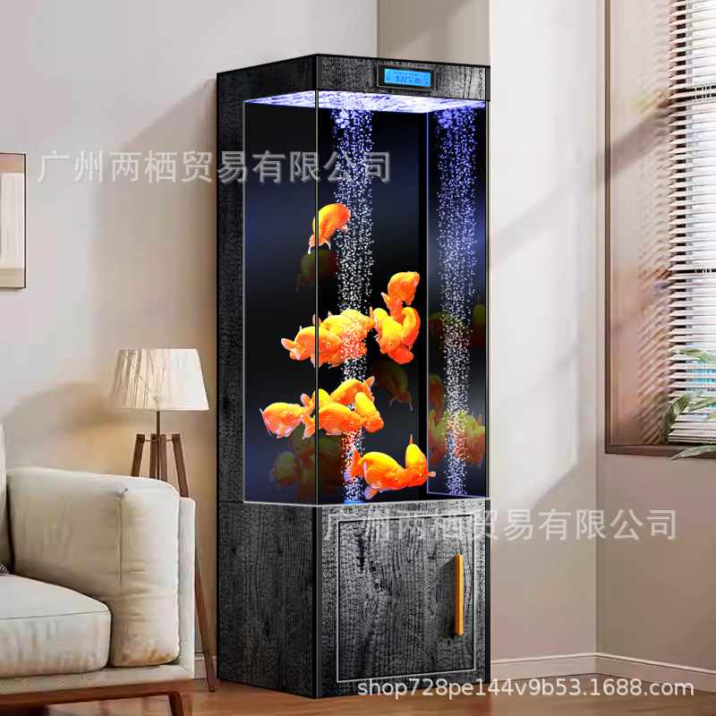 거실 수직 소형 어항 자체 순환 물 교체 없음 금붕어 탱크 TV 캐비닛 옆에 있는 초백색 유리 스마트 수족관