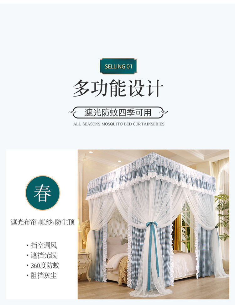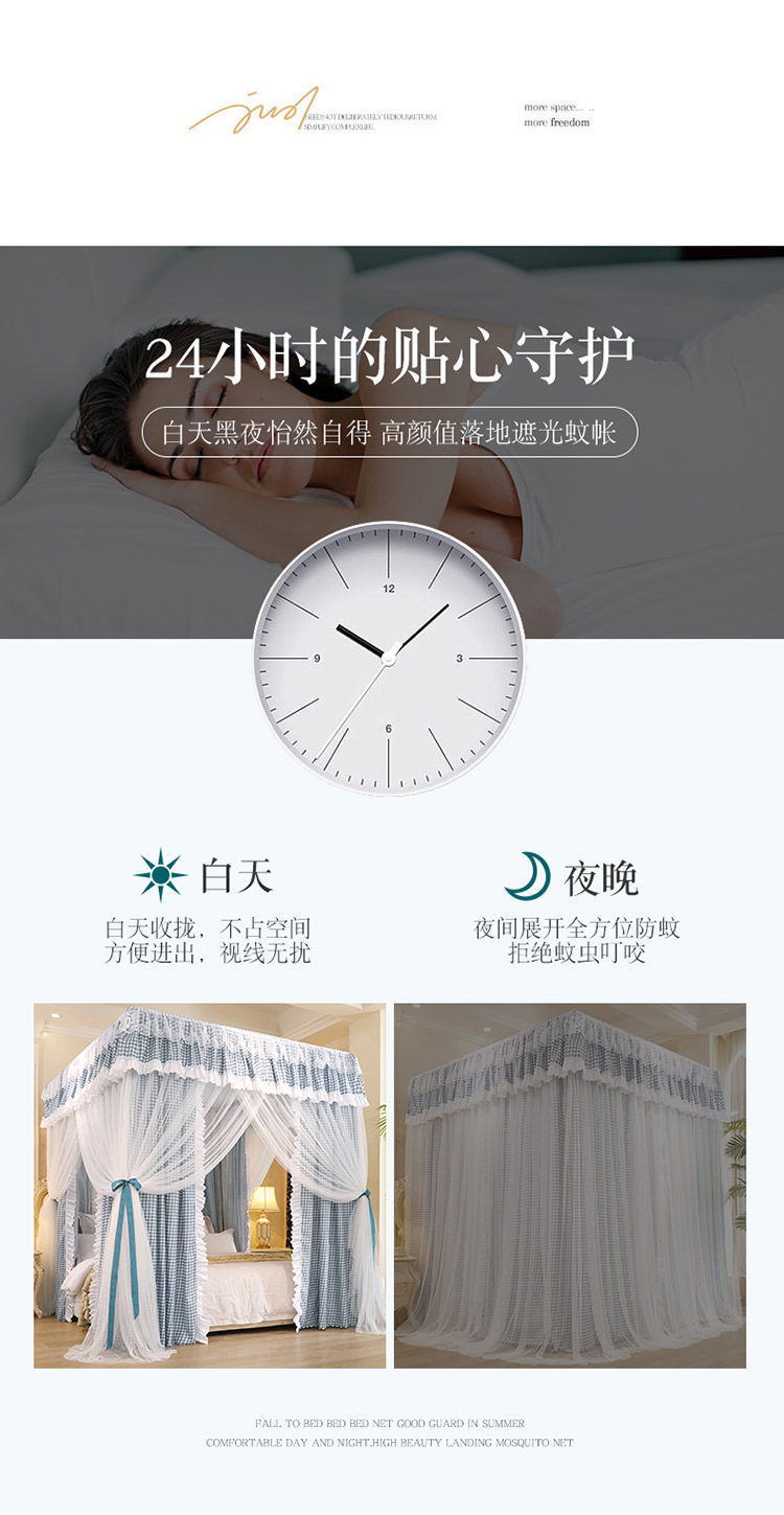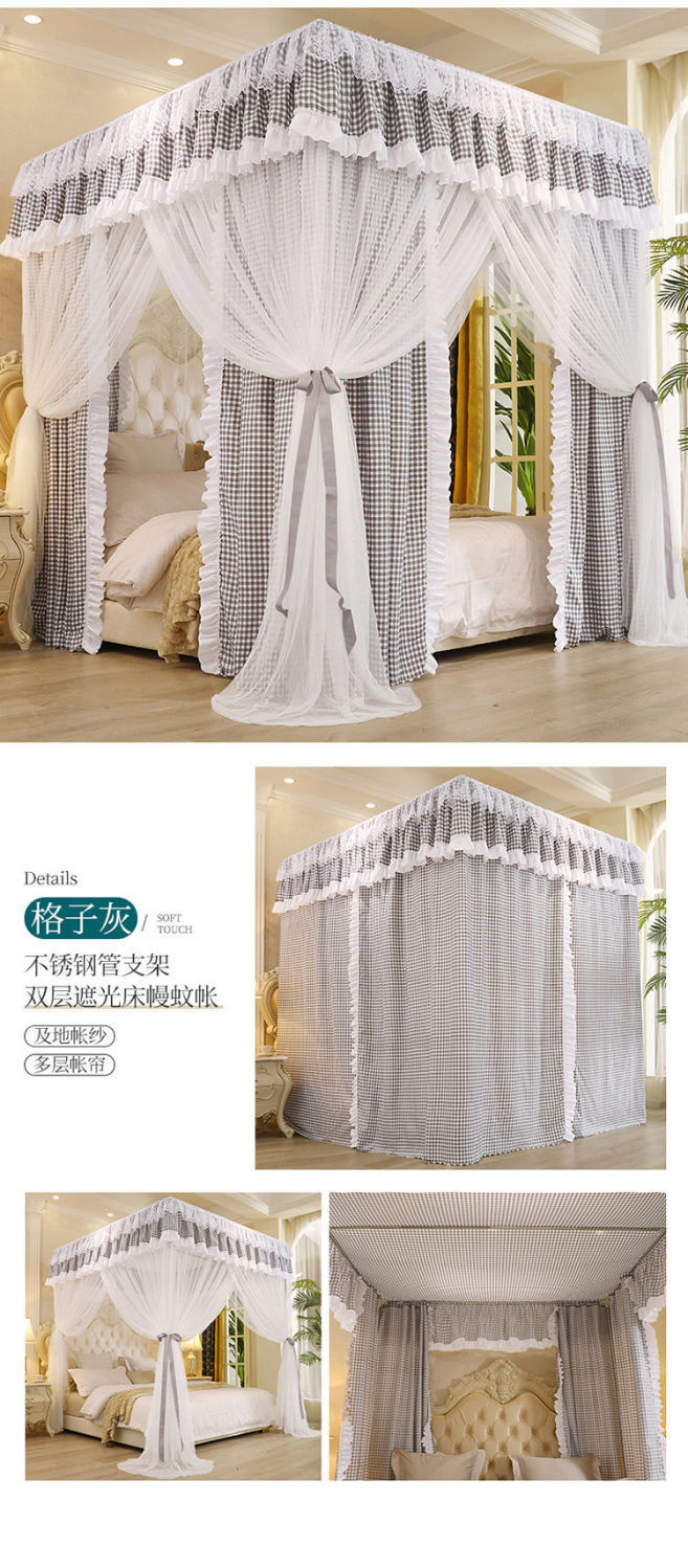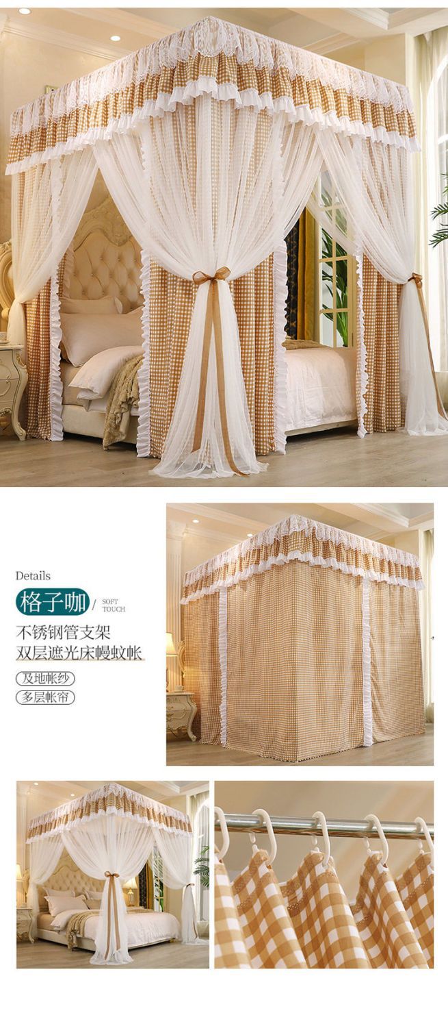 침대 커튼, 모기장, 가정용 침실용 차광, 스탠드가 있는 일체형, 암호화 및 두꺼운 궁전 바닥 커튼, 방진 상단 천스토어 가기