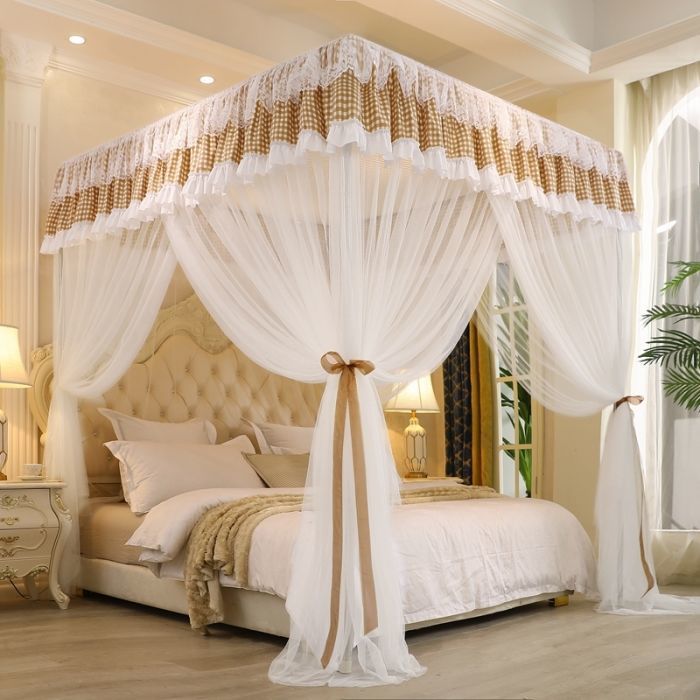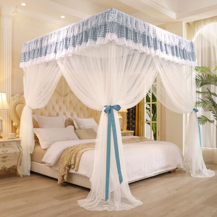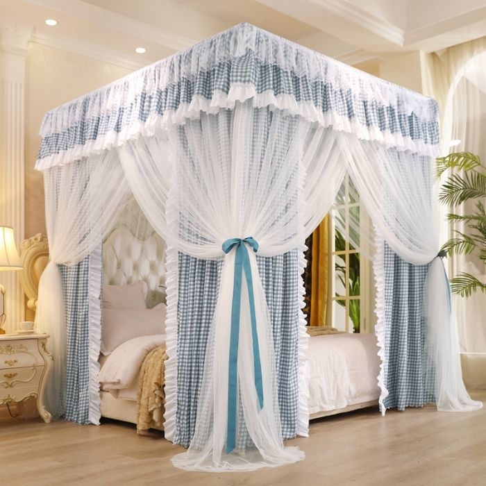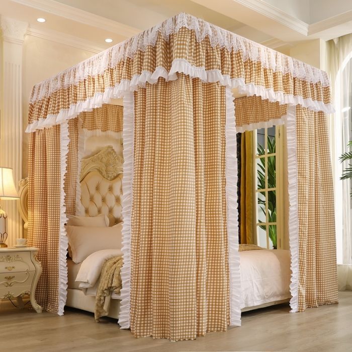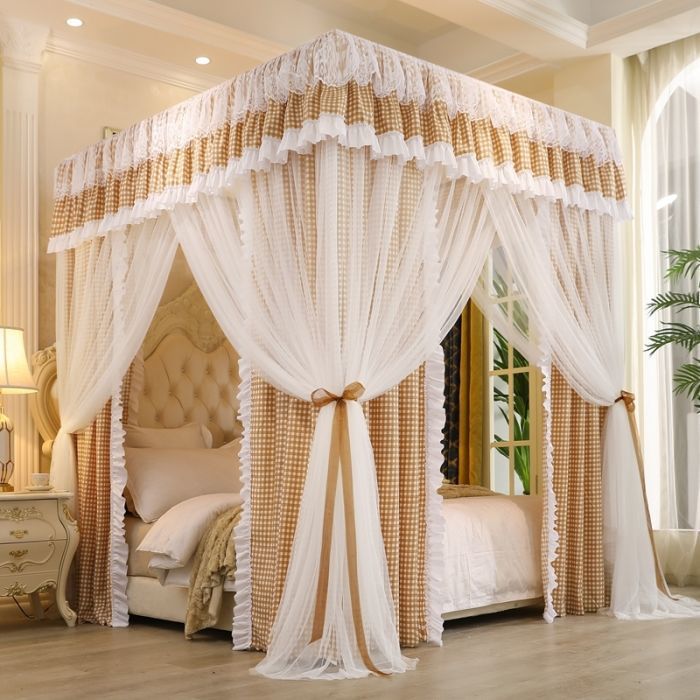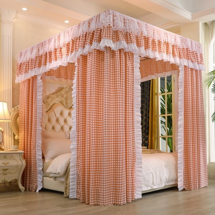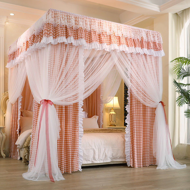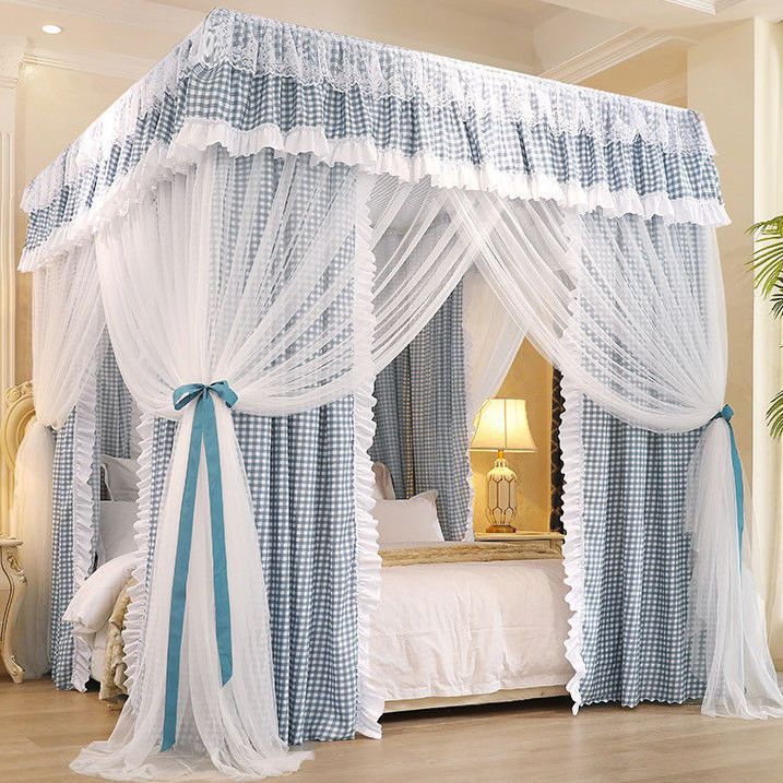 침대 커튼, 모기장, 가정용 침실용 차광, 스탠드가 있는 일체형, 암호화 및 두꺼운 궁전 바닥 커튼, 방진 상단 천스토어 가기
