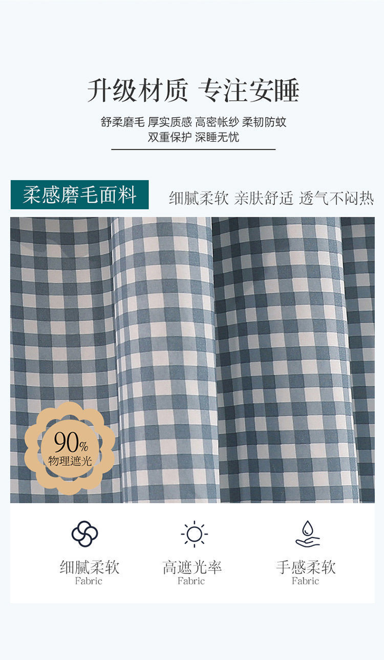 • 체크무늬 블루/방진 상판 + 침대 커튼(커튼 없음, 브래킷 없음)