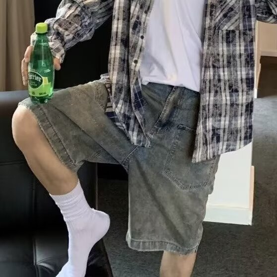 DGE 아메리칸 레트로 하이 스트리트 디스트레스드 워싱 워스트랜드 스타일 포켓 디자인 데님 반바지 남성 여름 휴가용 5부 바지스토어 가기