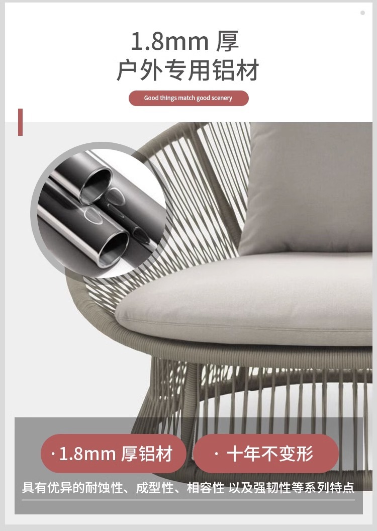 야외 알루미늄 합금 테이블과 의자, 안뜰, 호텔, 빌라, 정원, 발코니, 자외선 차단 및 방수 등나무 의자, 레저 의자, 테이블 1개와 의자 6개
