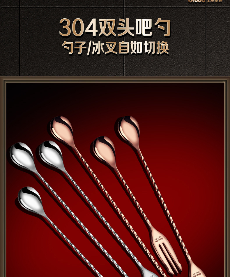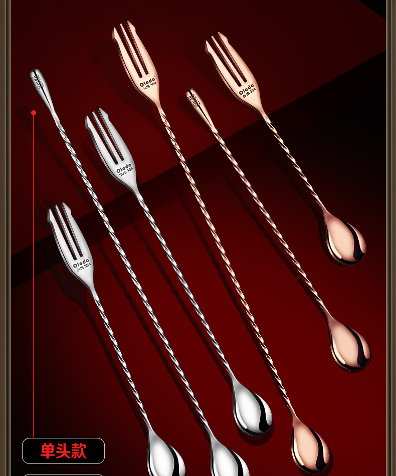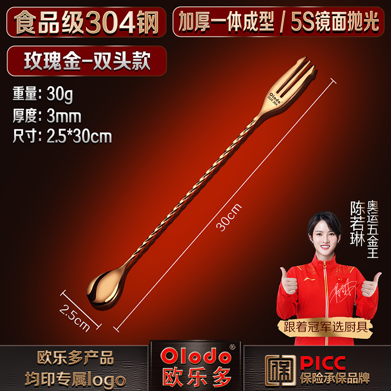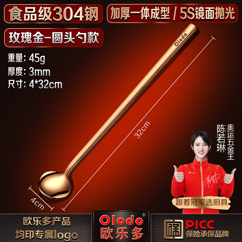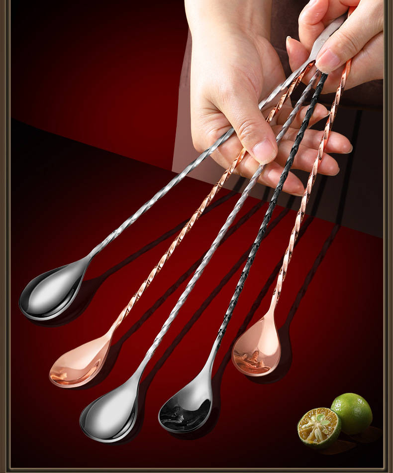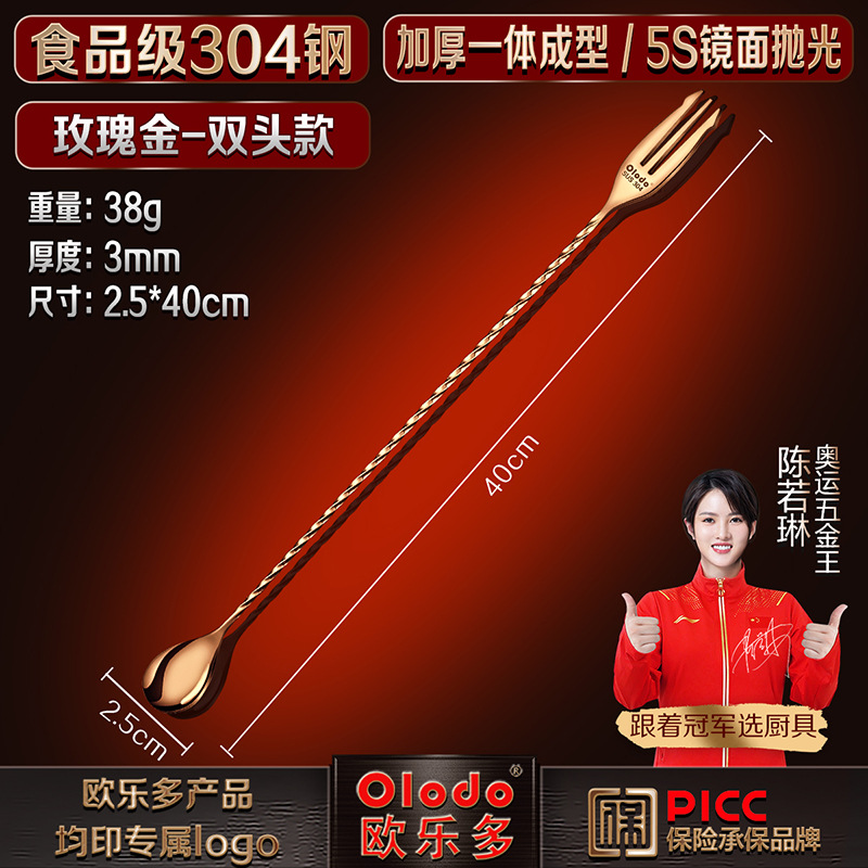 • 식품등급 304 스틸 [싱글 헤드 바 스푼 40cm] 로즈 골드
