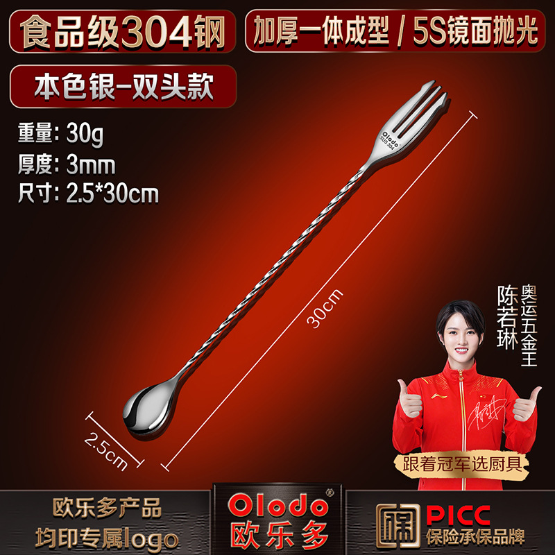 • 식품등급 304 스틸 [양두바스푼 30cm] 천연은