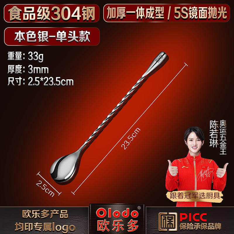 • 식품등급 304 스틸 [싱글 헤드 바 스푼 23.5cm] 천연 실버