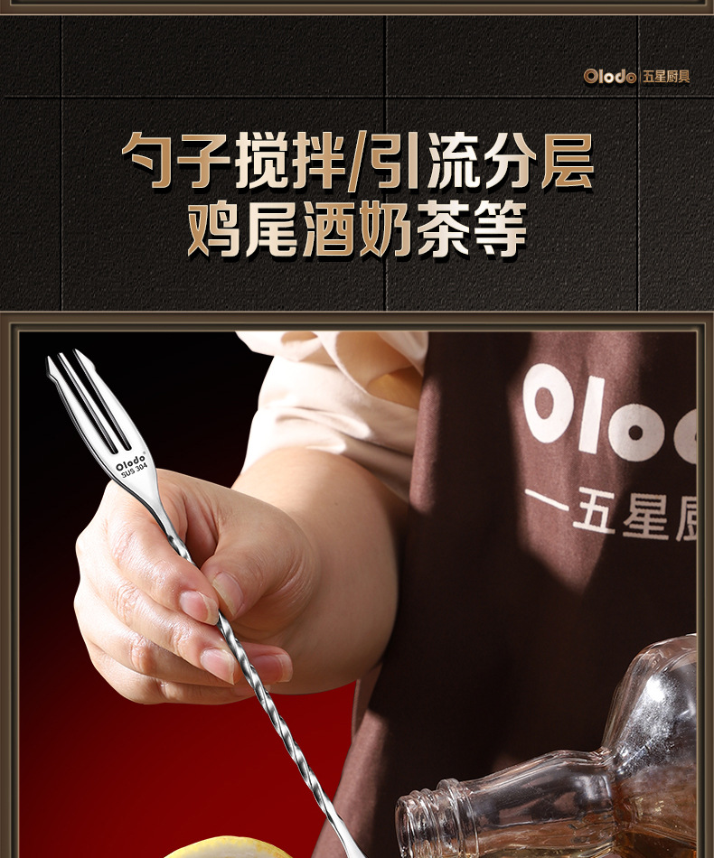 • 식품등급 304 스틸 [싱글 헤드 바 스푼 40cm] 젠틀맨 블랙
