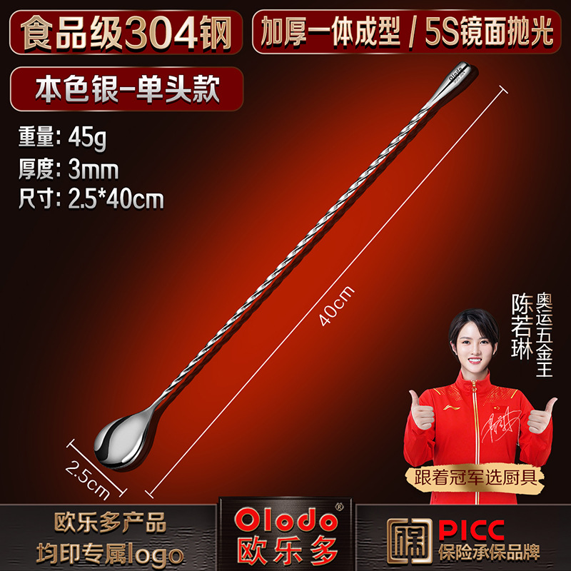 • 식품등급 304 스틸 [싱글 헤드 바 스푼 30cm] 천연 실버