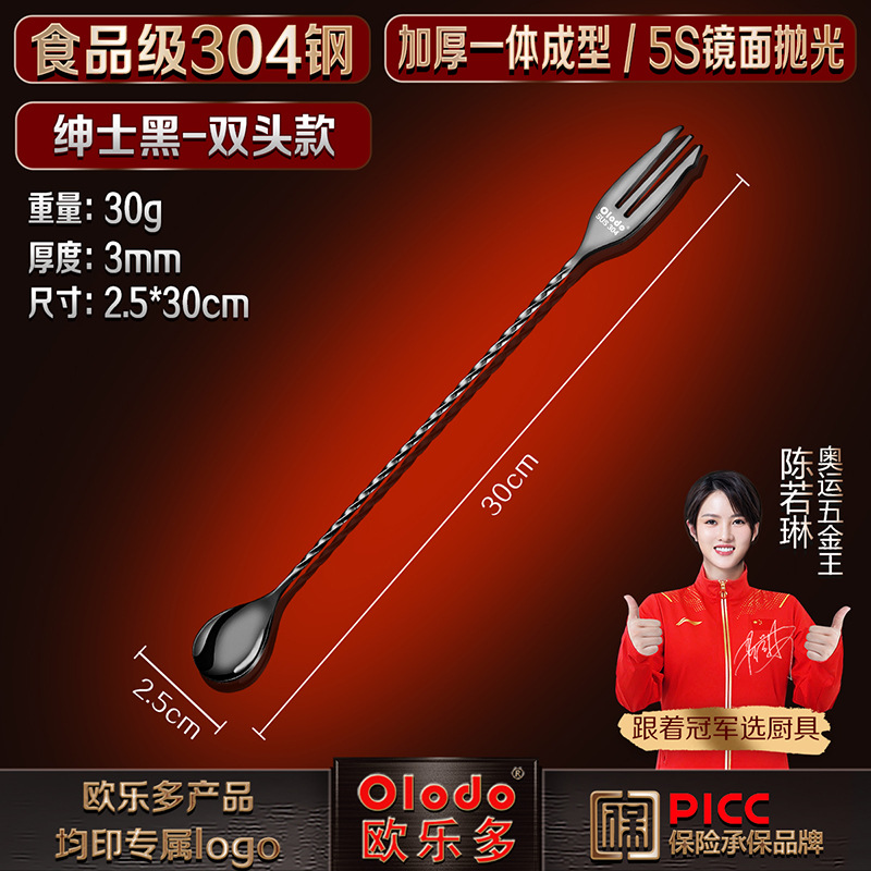 • 식품등급 304 스틸 [양두바스푼 30cm] 젠틀맨 블랙