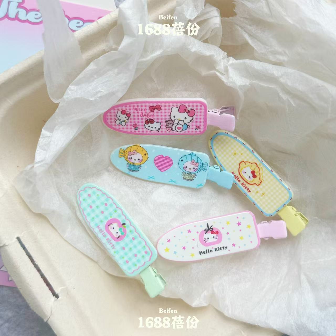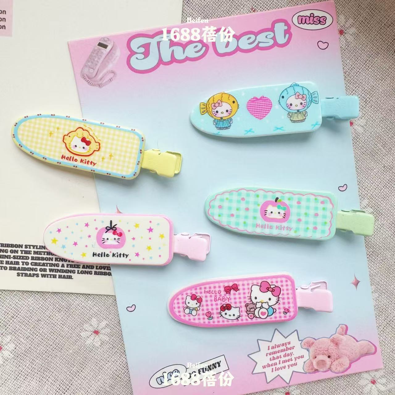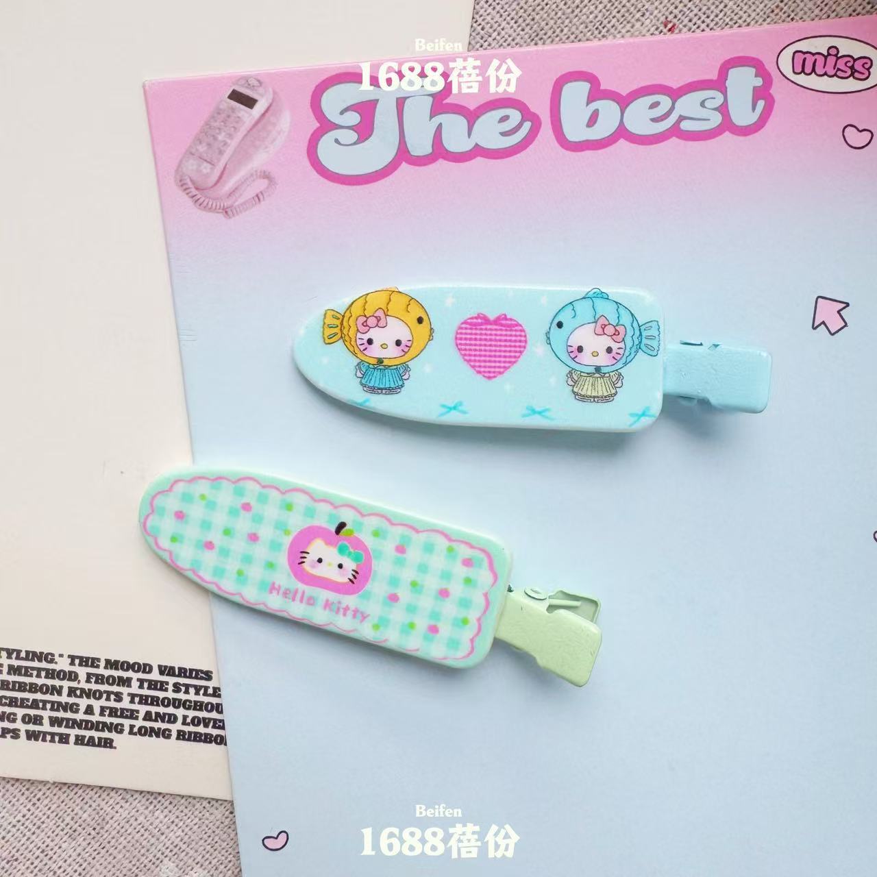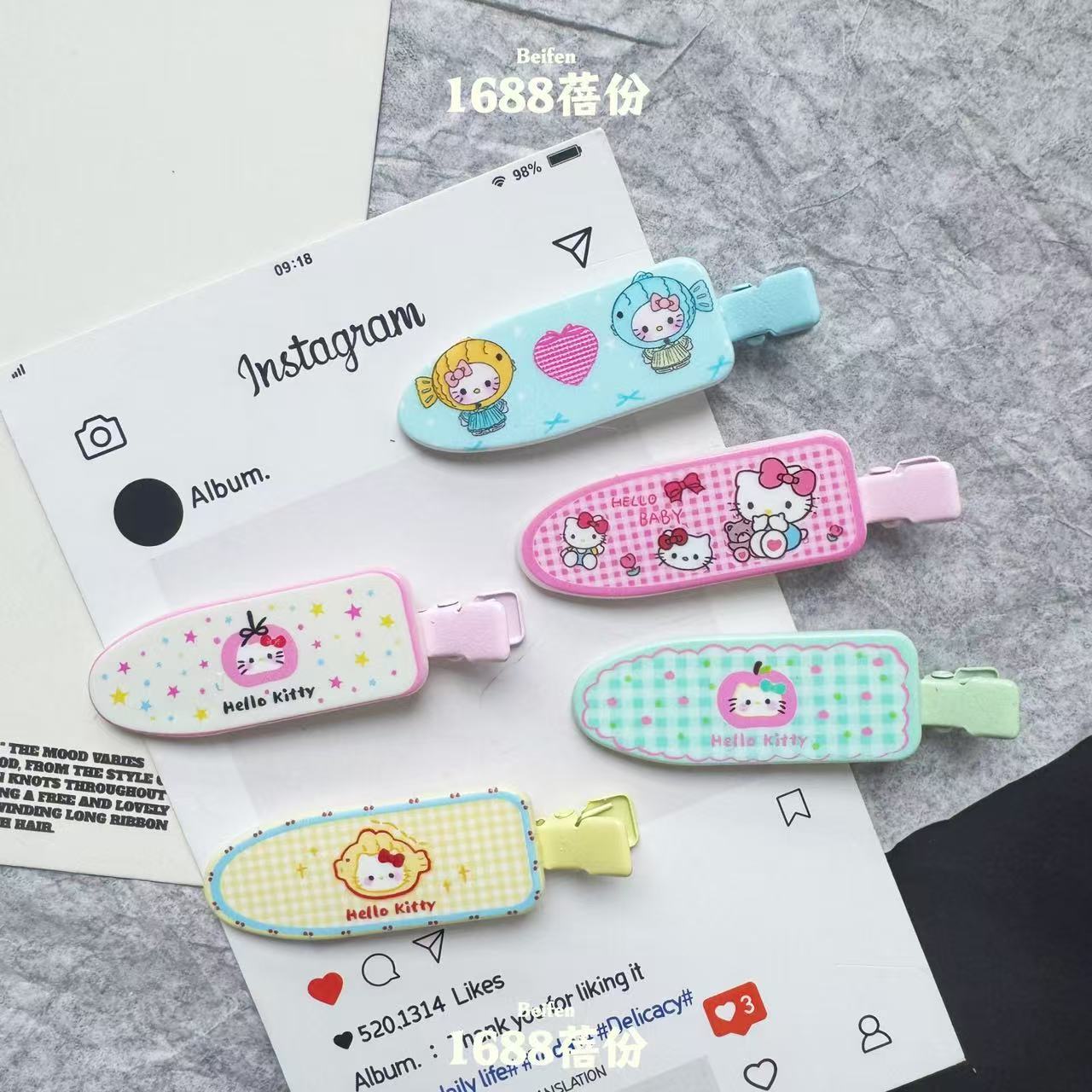 만화 인쇄 KT Traceless 헤어 클립 달콤한 소녀 하트 도파민 뱅 사이드 클립 올 매치 귀여운 헤어 액세서리