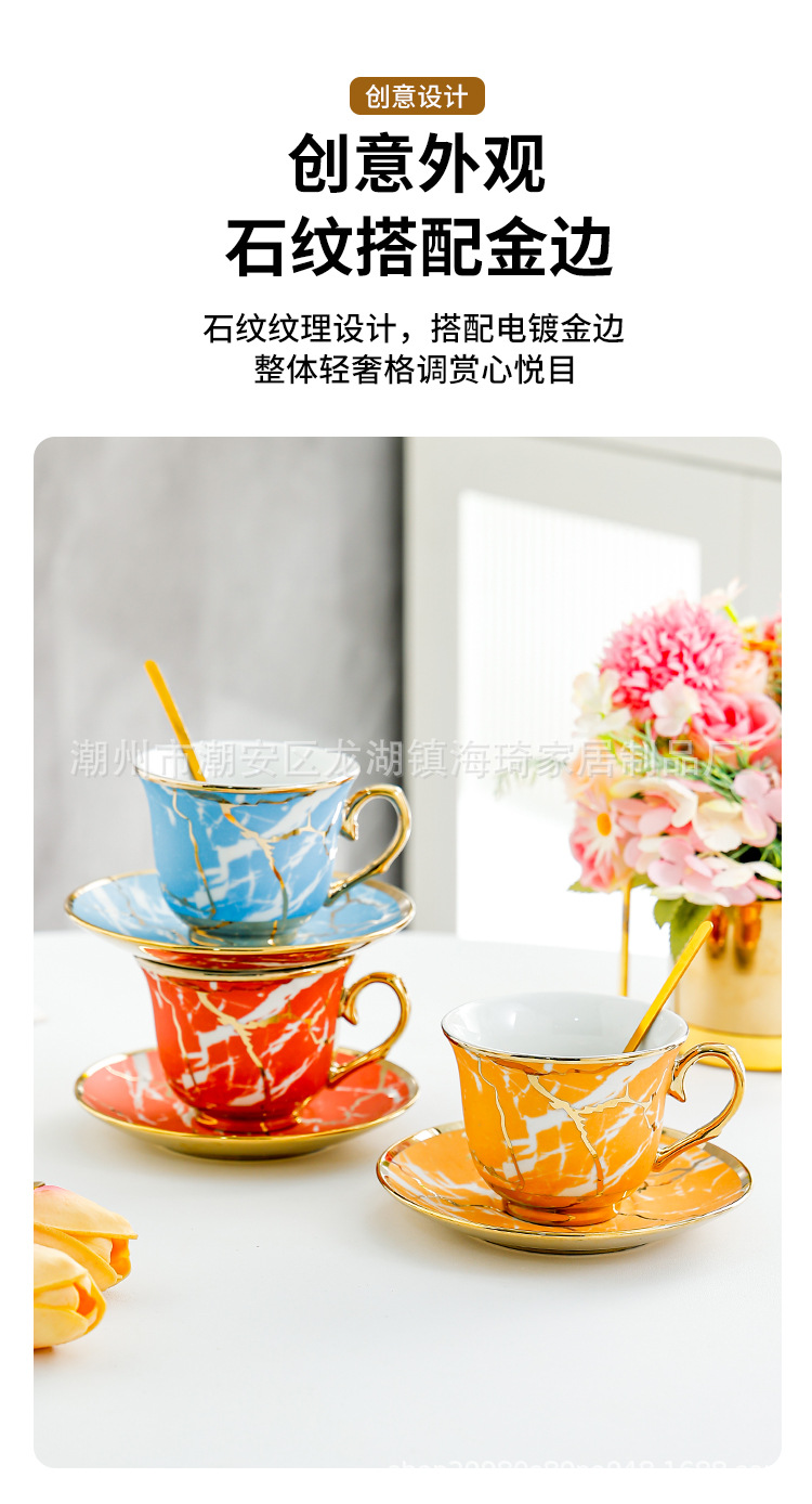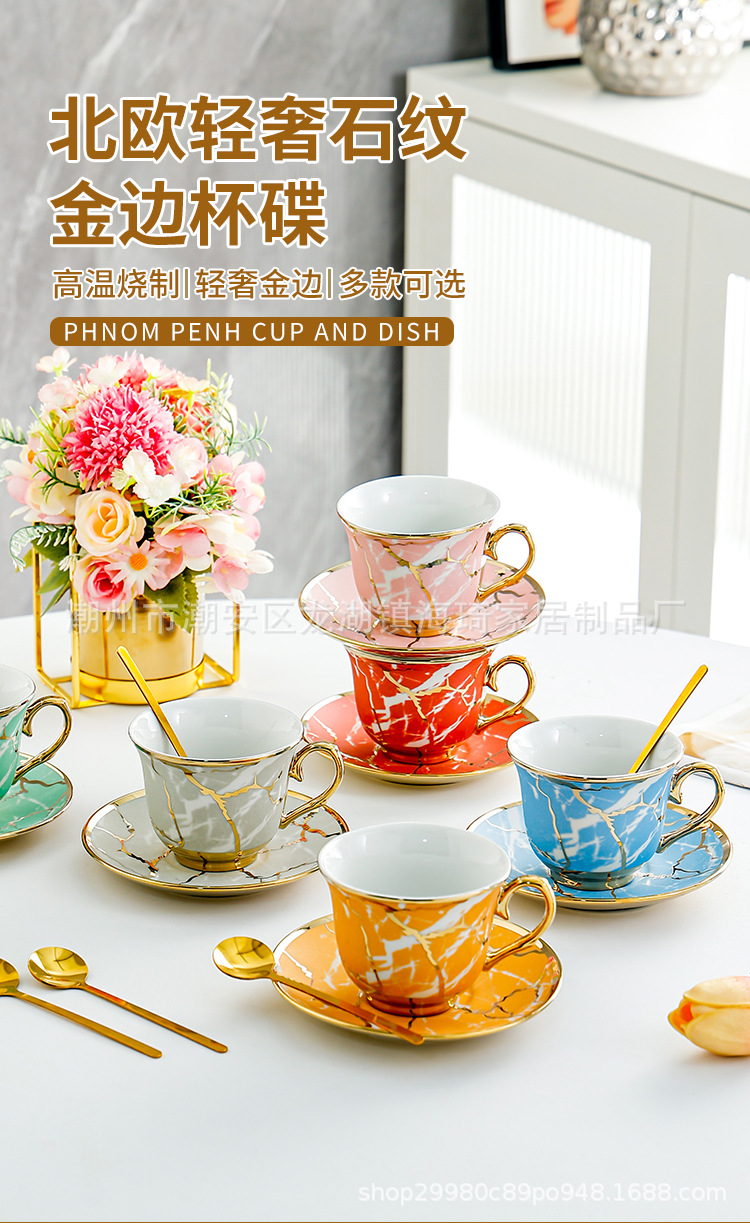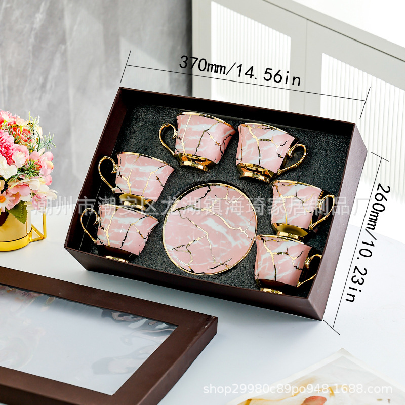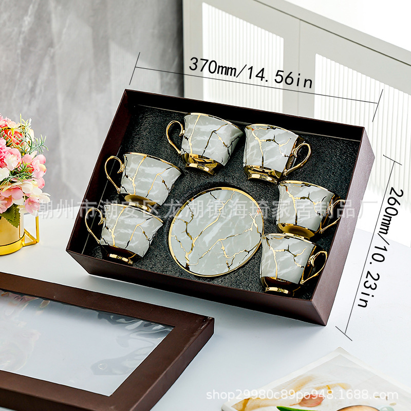국경 간 커피 컵 접시 세트 아랍 중동 세라믹 컵 유럽 도금 컵 접시 세트 6 컵 6 플레이트 도매스토어 가기