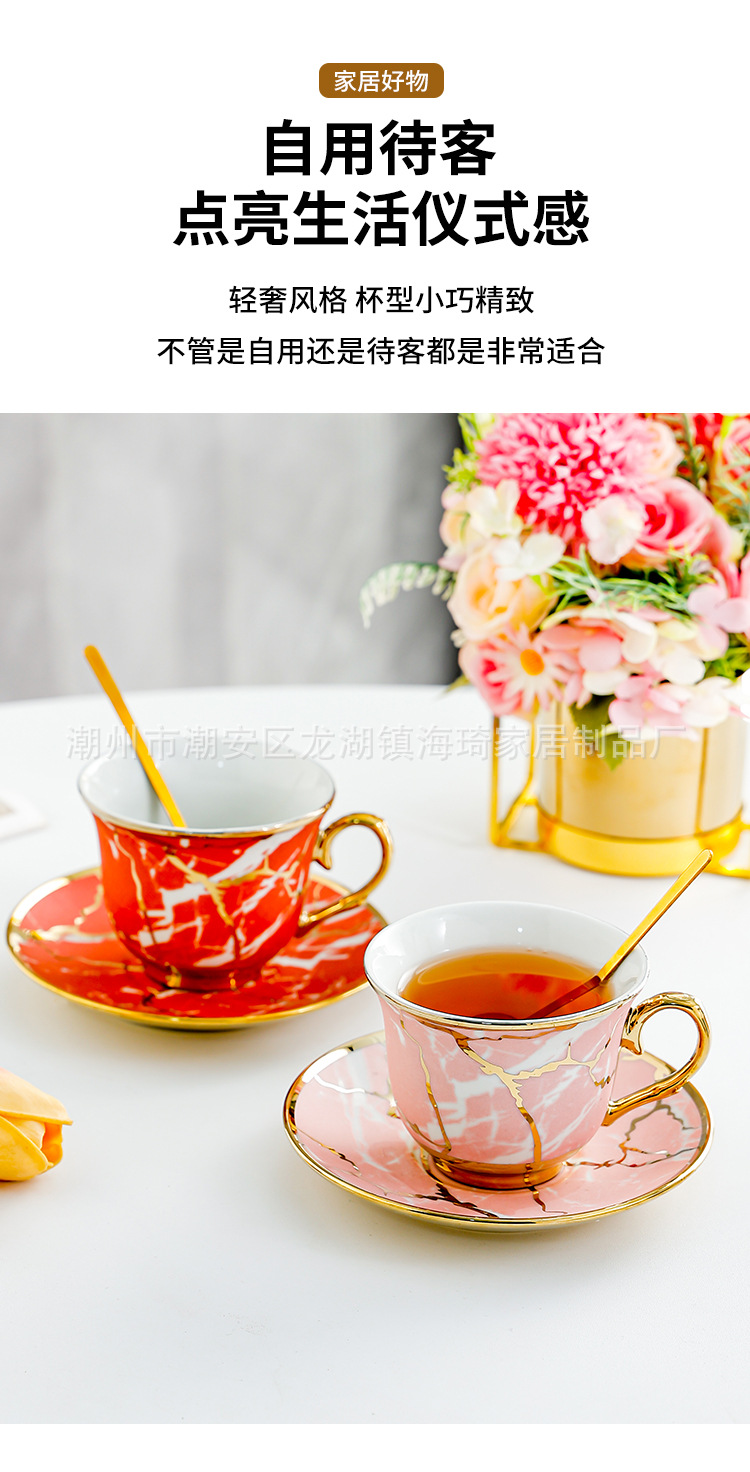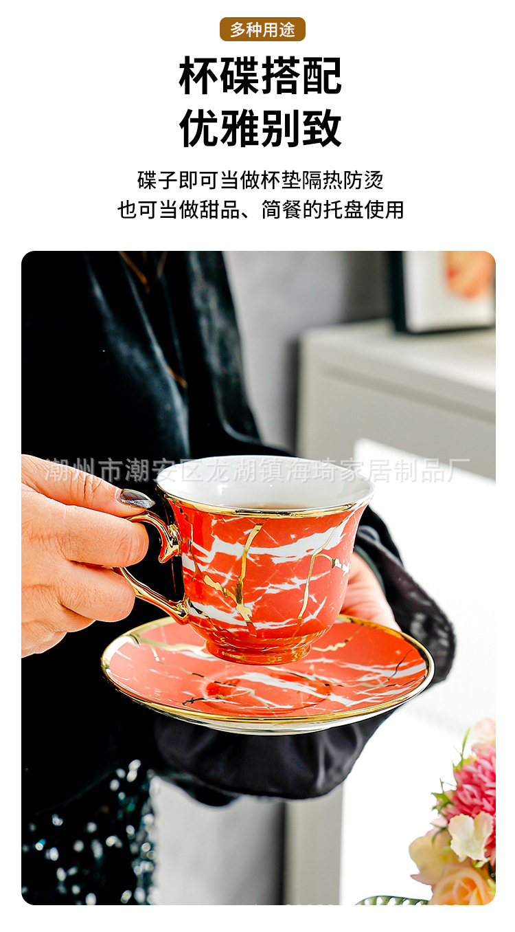 • 커피 컵 레드 대리석 골드 림 WF-1010 세트