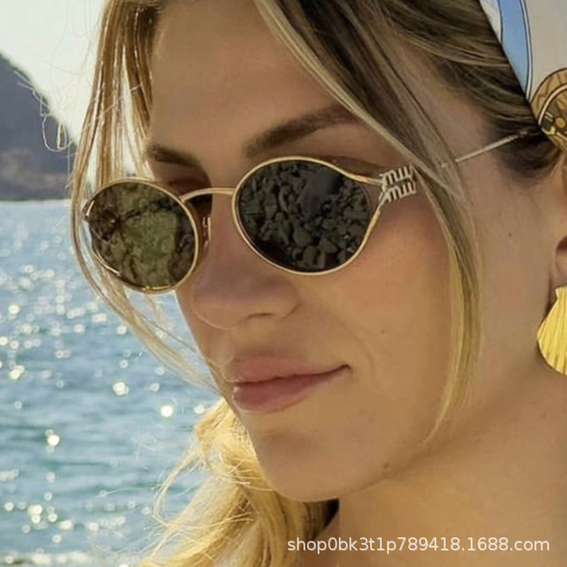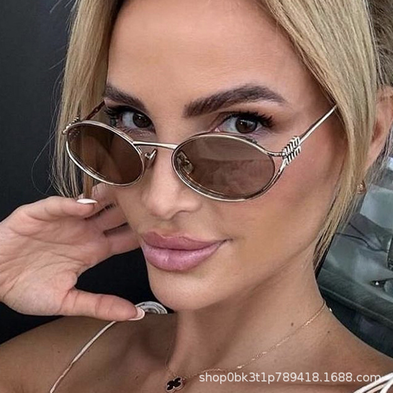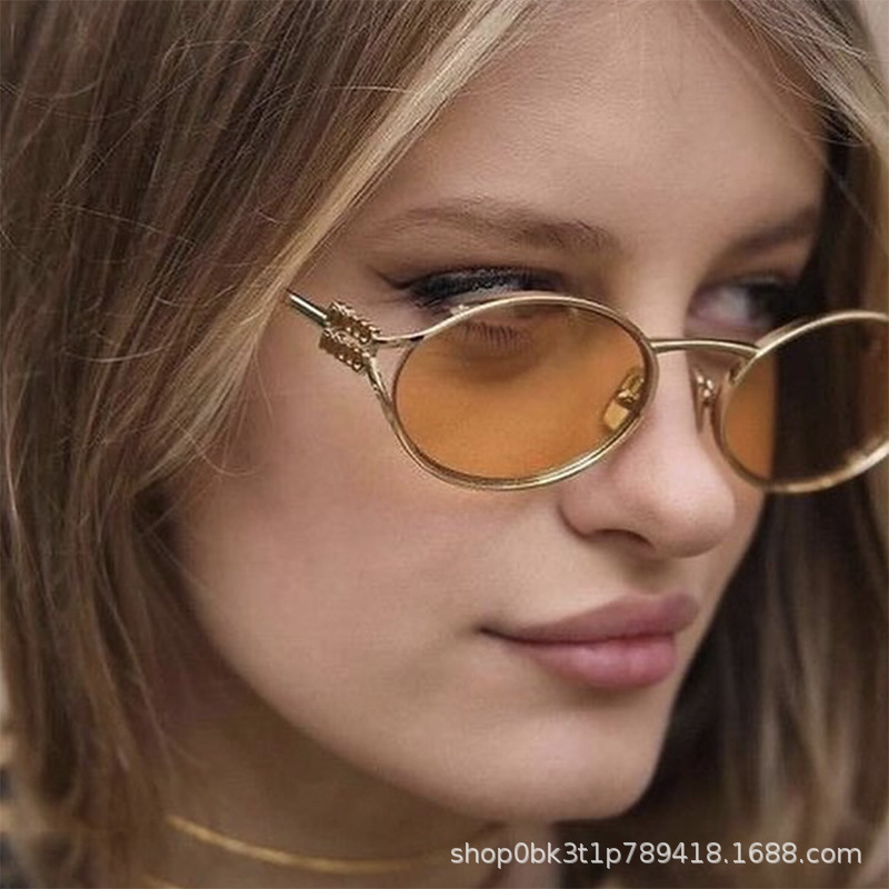 새로운 유럽과 미국의 국경 간 선글라스 패션 스파이스 걸스 타원형 할로우 선글라스 여성 고급 립 캐브 모양의 안경스토어 가기