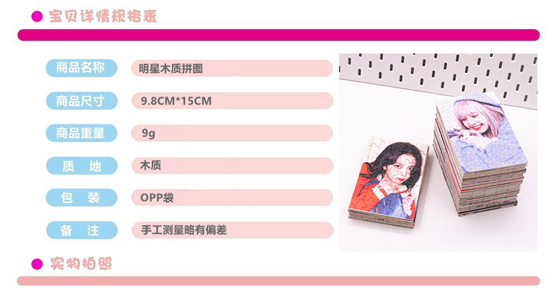 BLACKPINK 여성 그룹 스타일 Jin Zhixiu 약 35 미니 재고 나무 직소 퍼즐 005