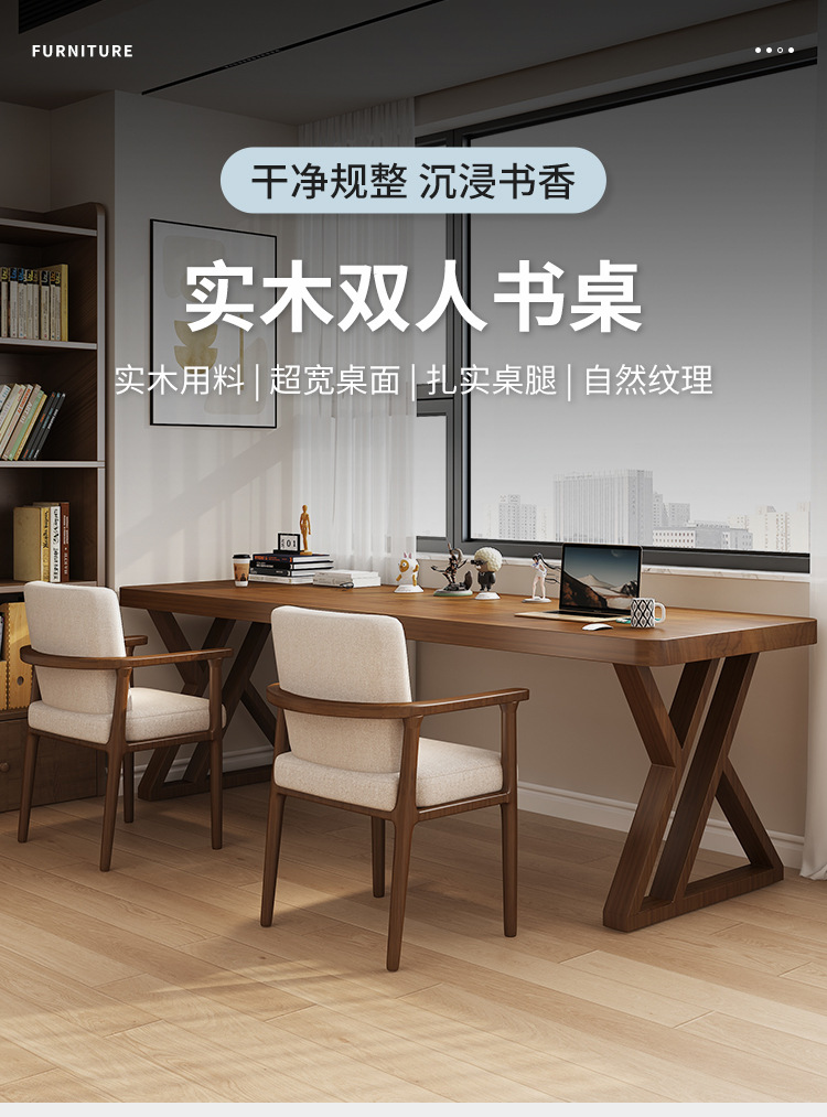 현대적인 간단한 단단한 나무 긴 책상 홈 스터디 더블 학생 학습 테이블 스튜디오 사무실 컴퓨터 테이블
