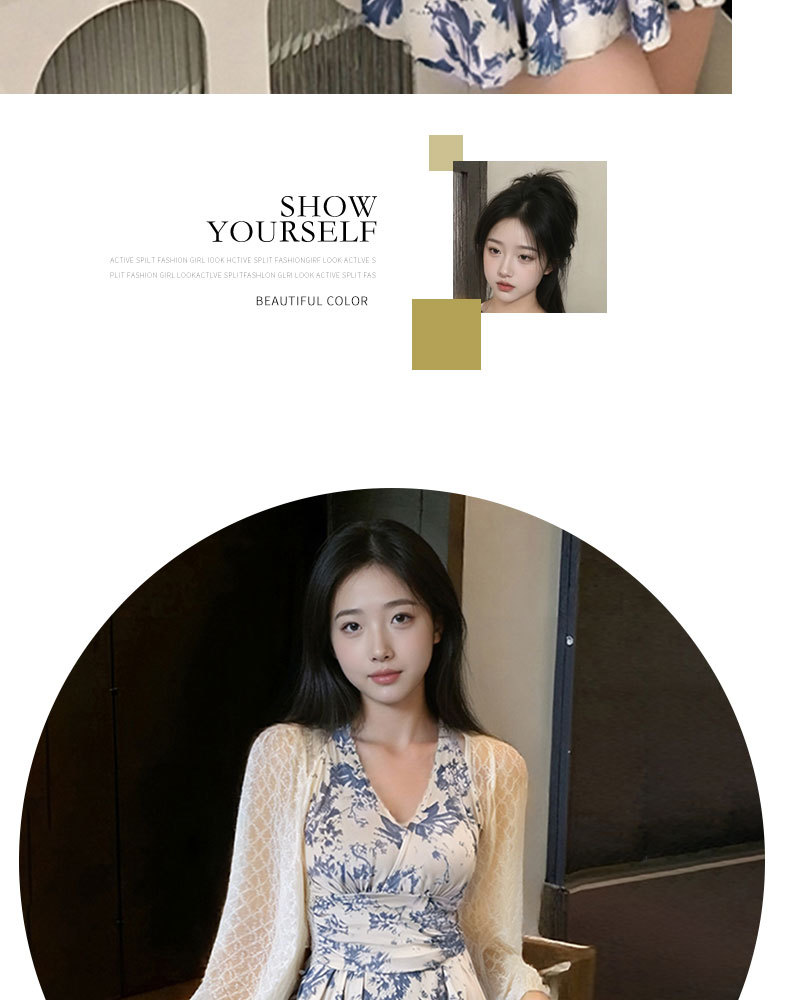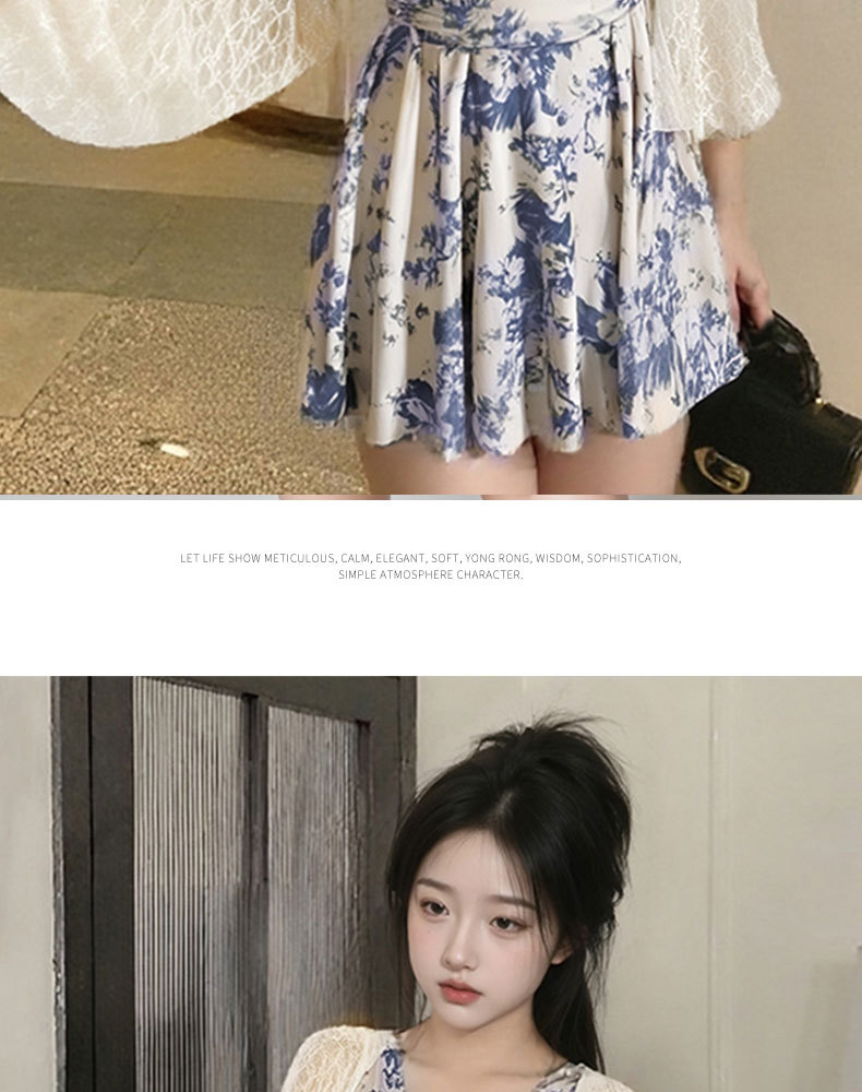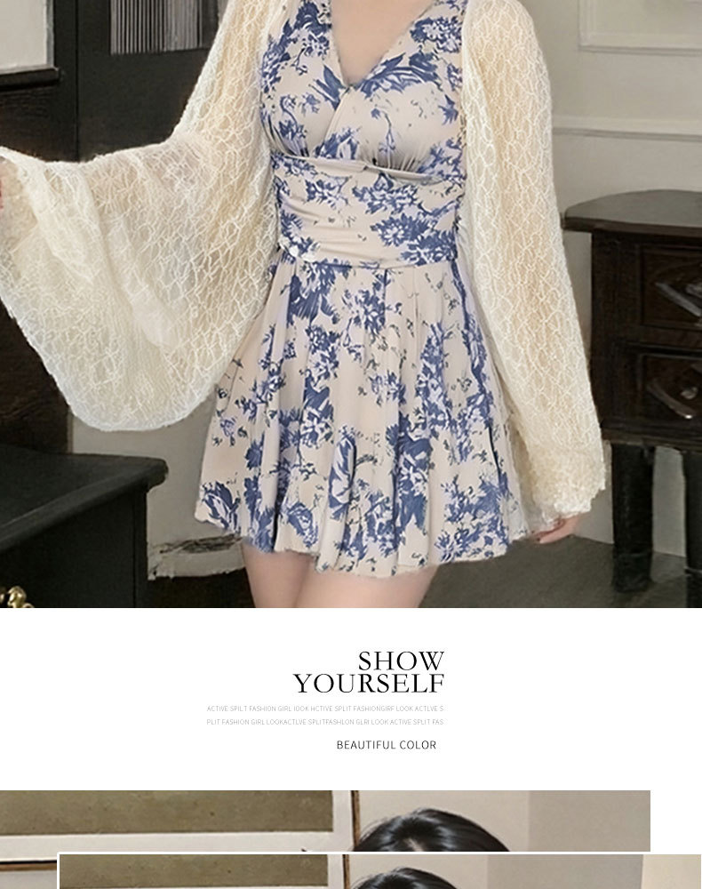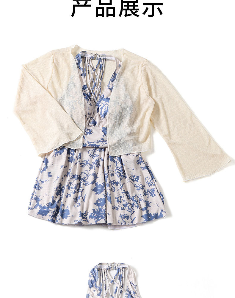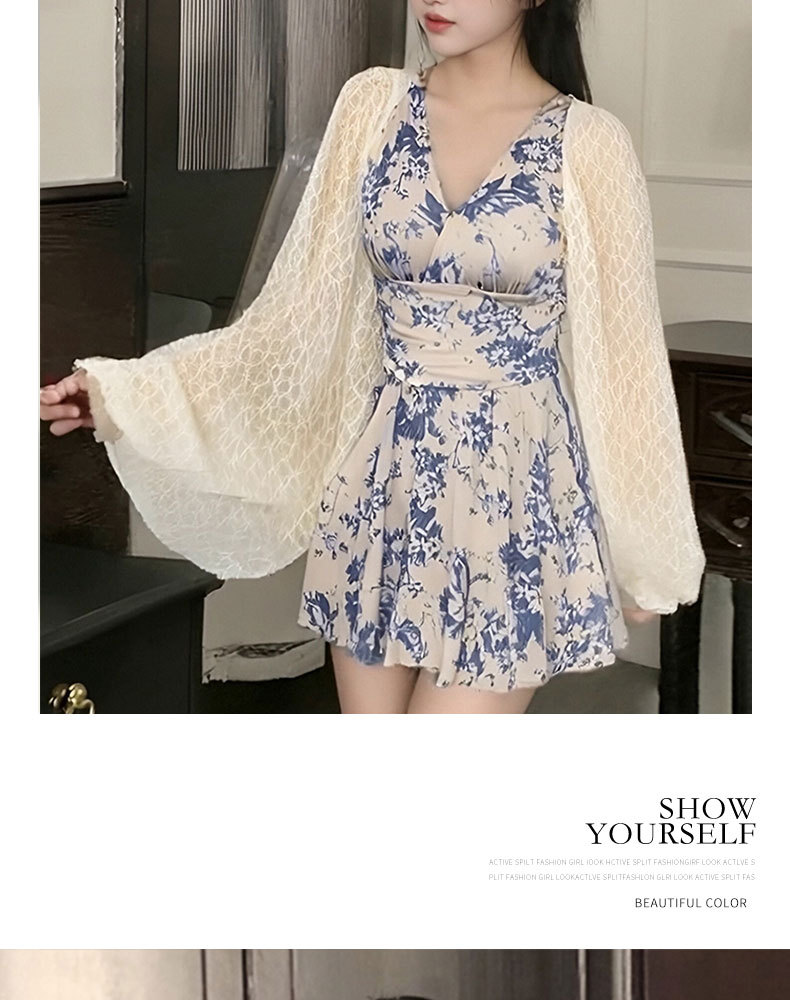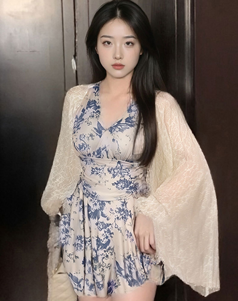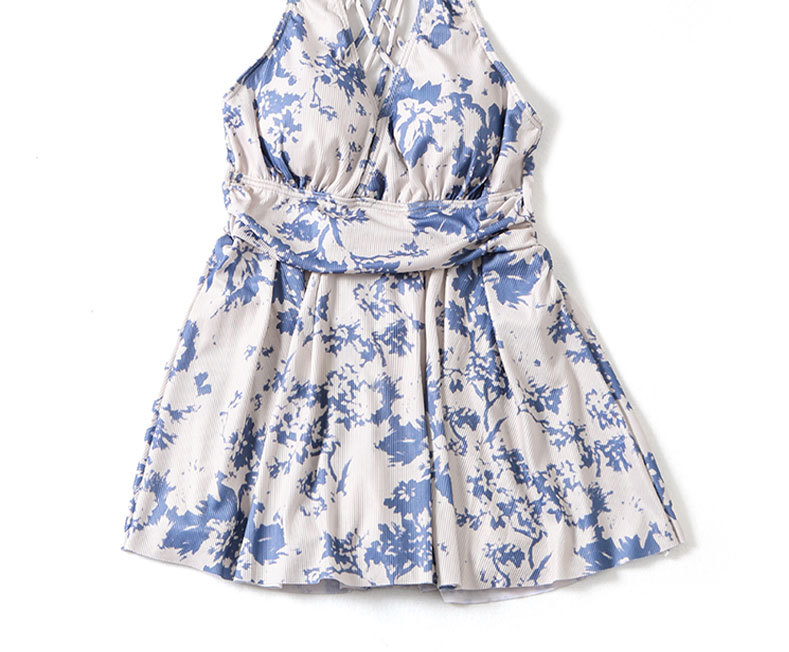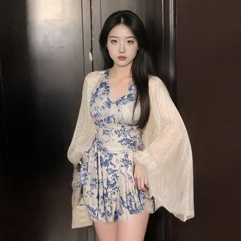 2025 새로운 원피스 스커트 수영복 블라우스 잉크 블루 인쇄 디자인 여성을위한 온천 휴가 수영복