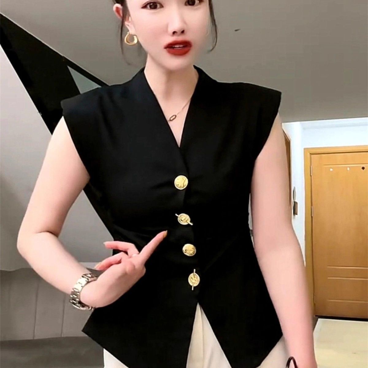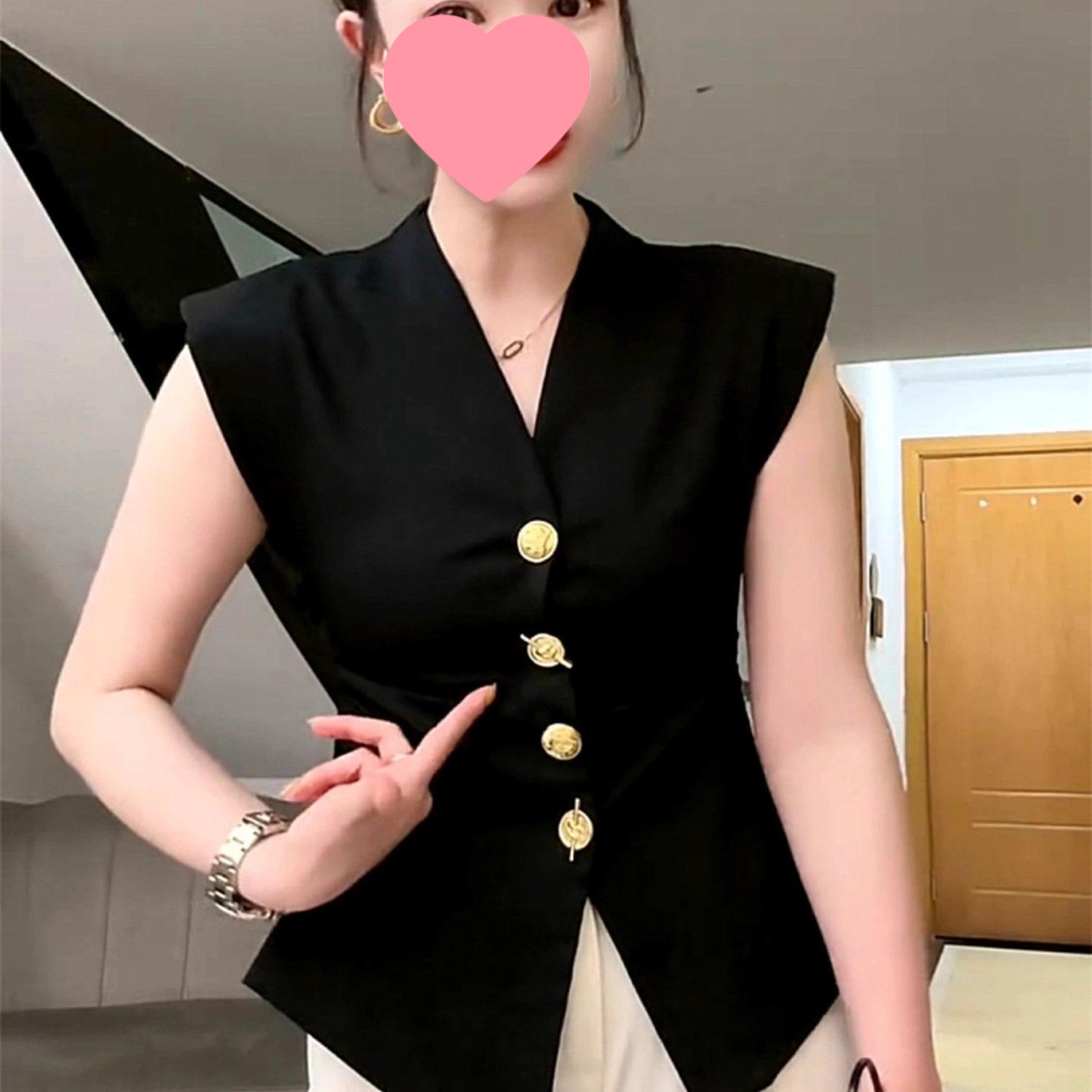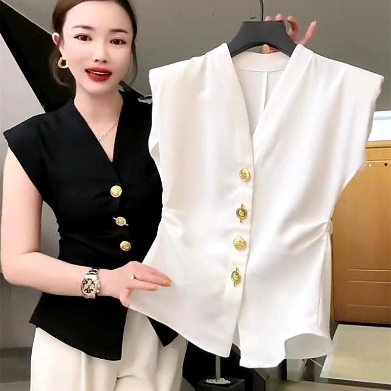 프랑스 빈티지 세트 조끼 여성 유럽식 여름 서양식 슬림 핏 타이트 웨이스트 헤비 듀티 버튼 민소매 탑스토어 가기