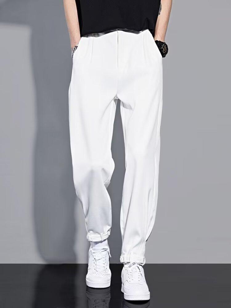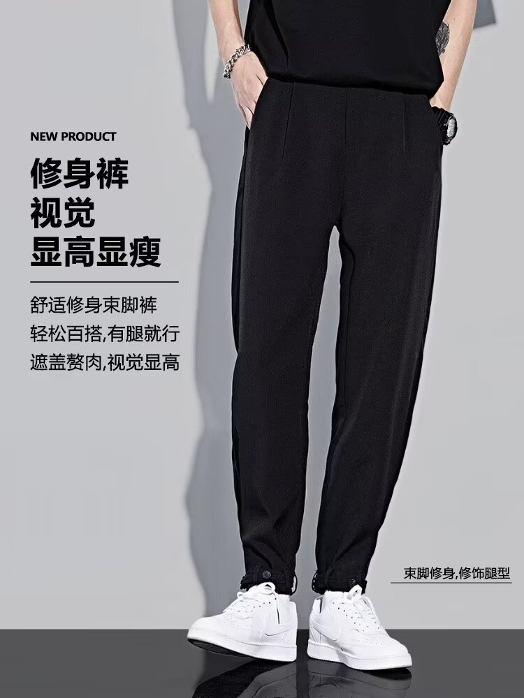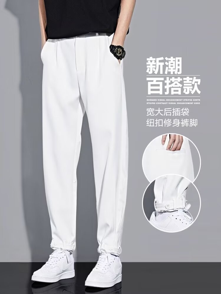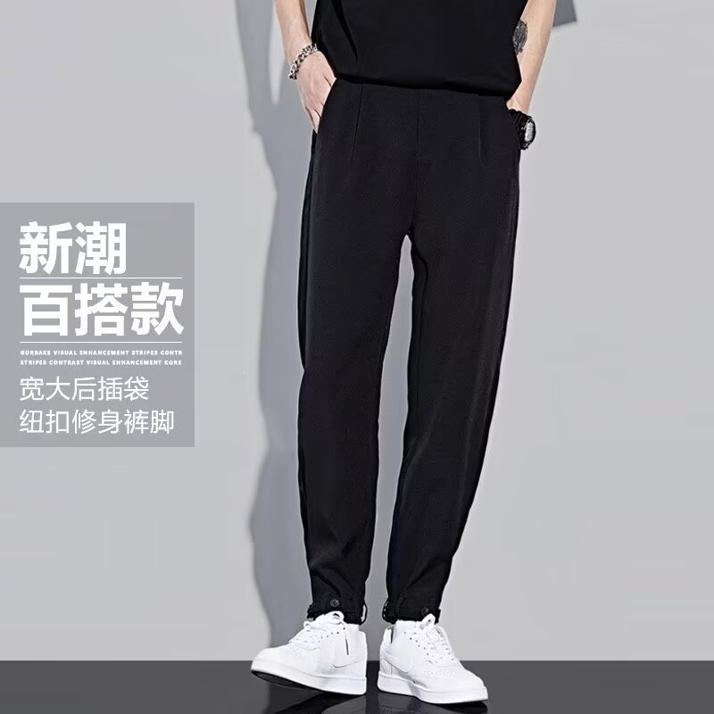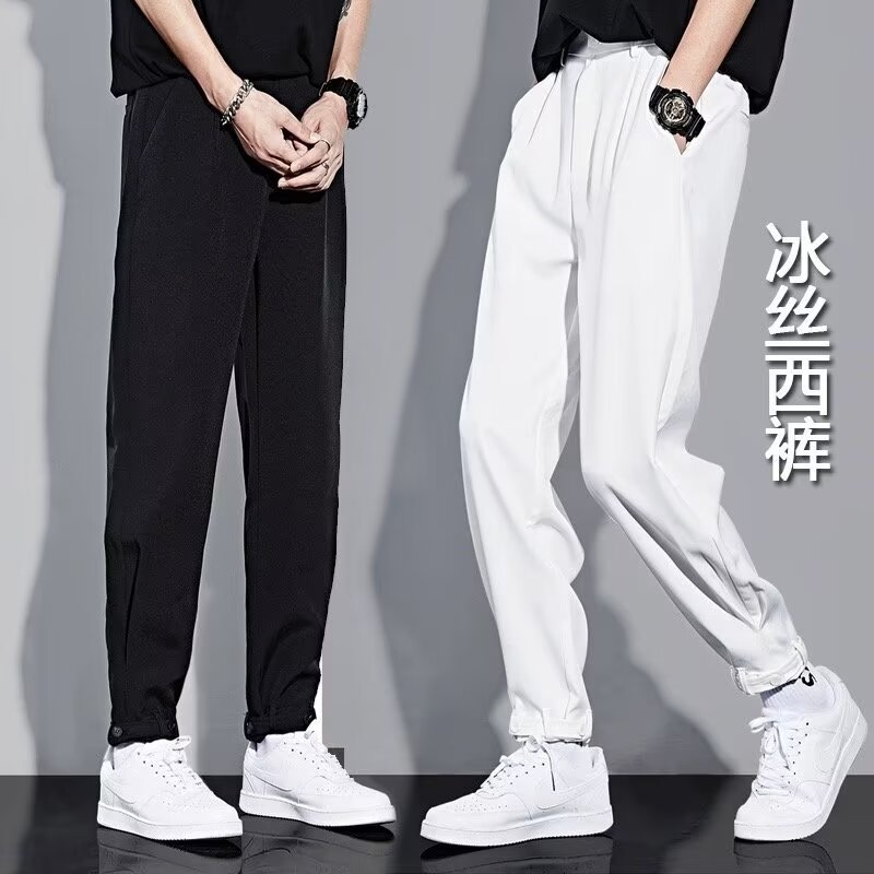 아이스 실크 바지 남성 봄, 가을 캐주얼 바지 루즈한 와이드 팬츠 대형 스트레이트 스포츠 바지 2024 패션 트렌드스토어 가기