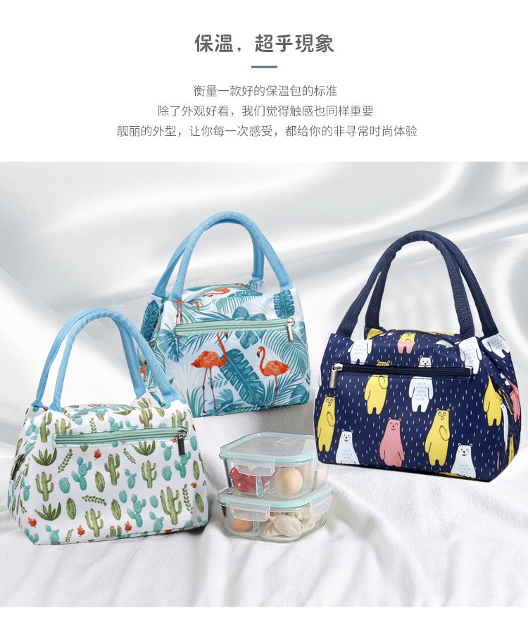 인쇄 지퍼 점심 가방 휴대용 절연 가방 여성 간단한 패션 방수 알루미늄 호일 절연 점심 가방 Wenzhou스토어 가기