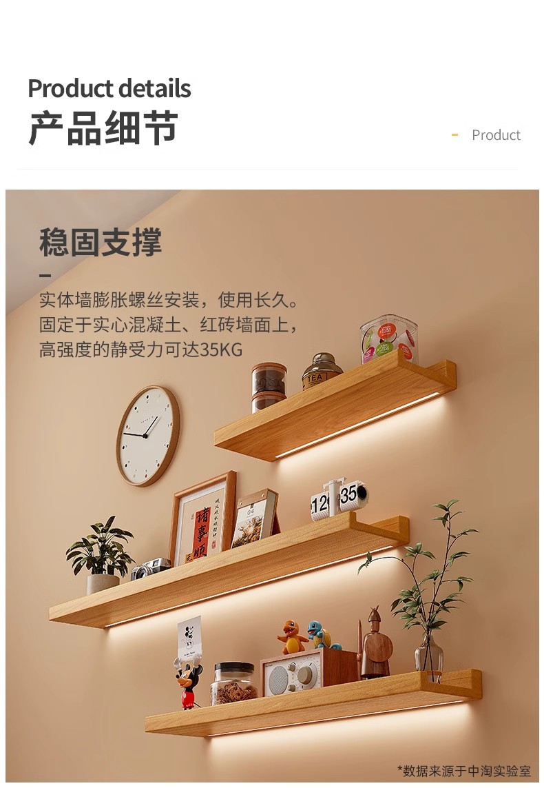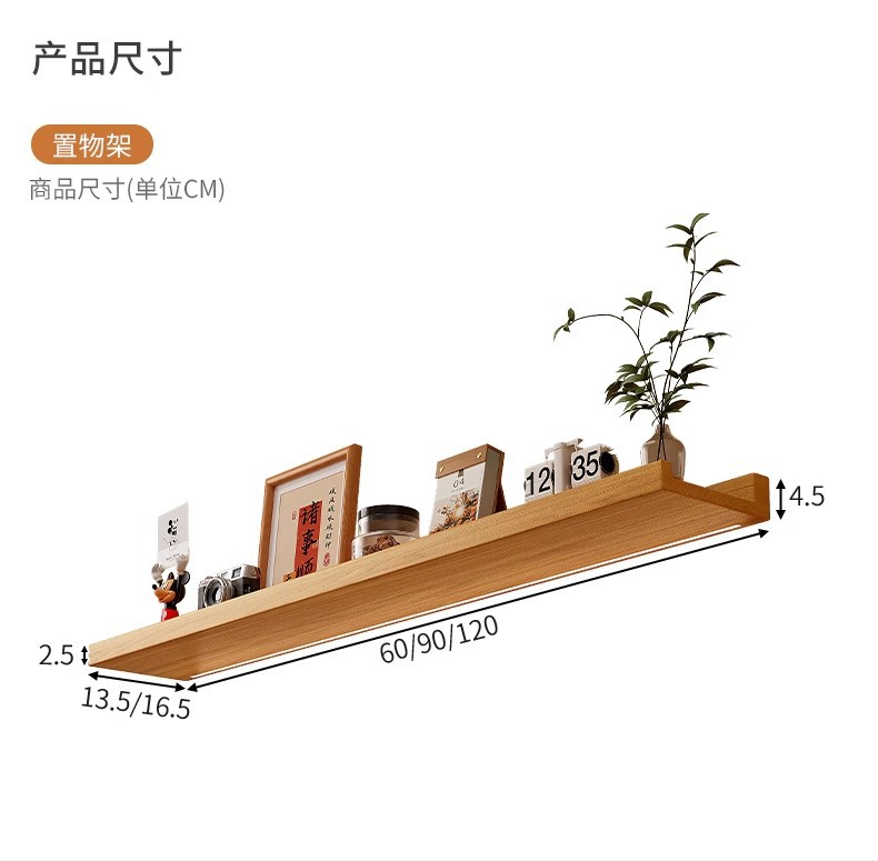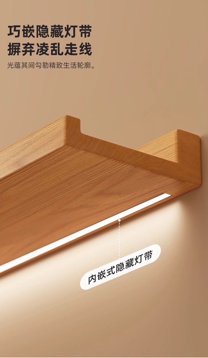 • 【90X12CM】-페인트가 없는 원목 색상과 야광 LED 조명 스트립