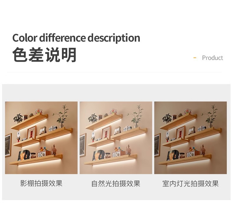 • 【60X12CM】-페인트가 없는 원목 색상과 야광 LED 조명 스트립