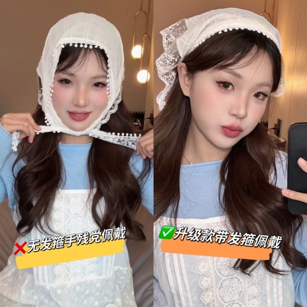 목가적 스타일의 레이스 머리띠, 새로운 스타일의 고층 삼각형 머리띠, 프렌치 복고풍 격자 무늬, 달콤하고 귀여운 머리 스카프