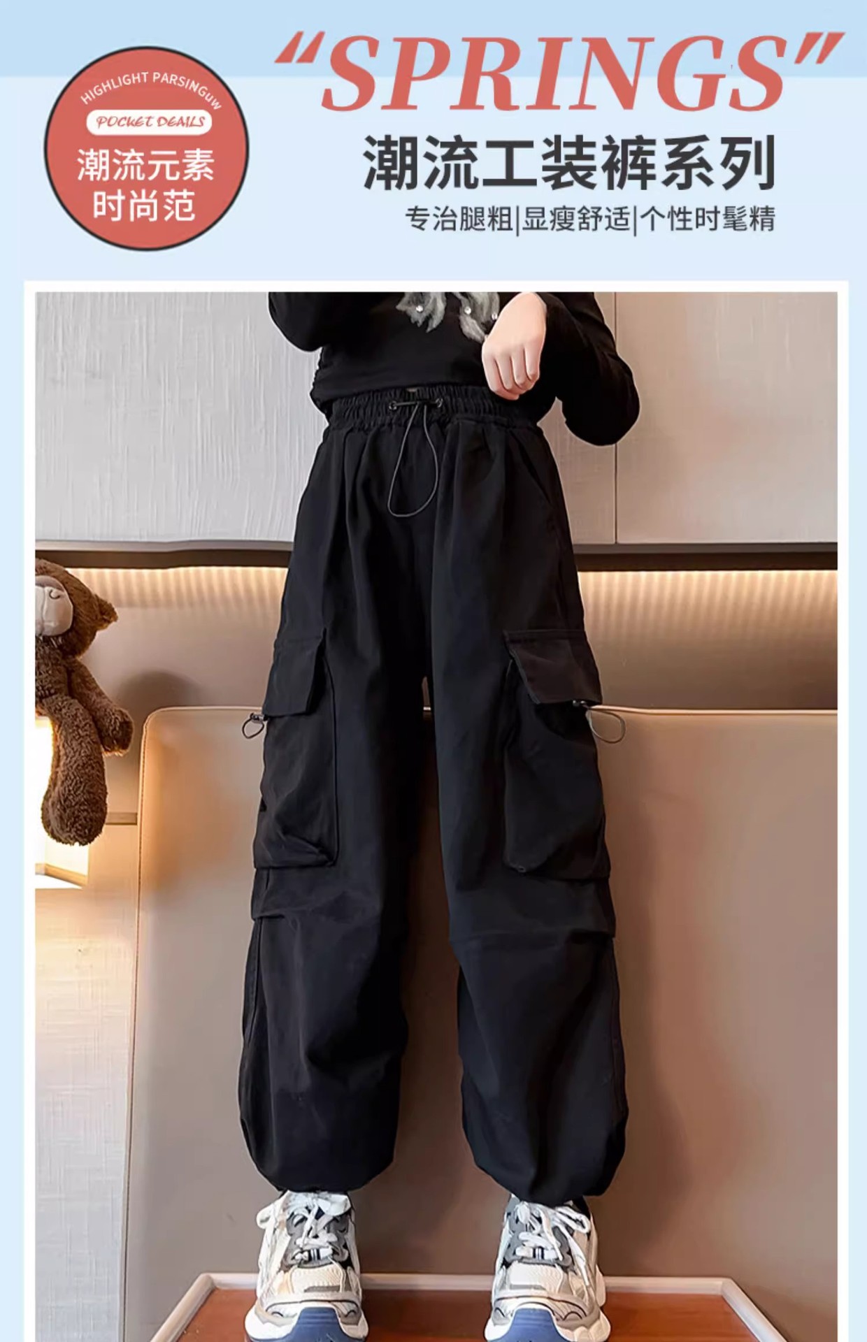 소녀 바지 2024 년 봄과 가을 새로운 큐크 어린이 패딩 서양식 바지 겨울 기모 느슨한 캐주얼 바지스토어 가기