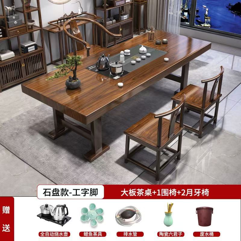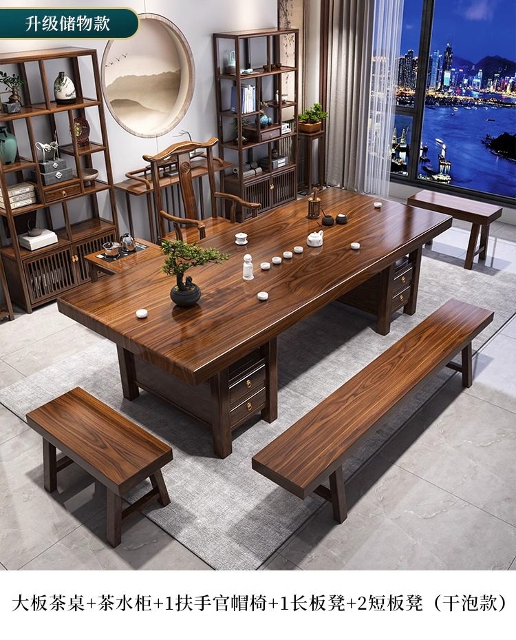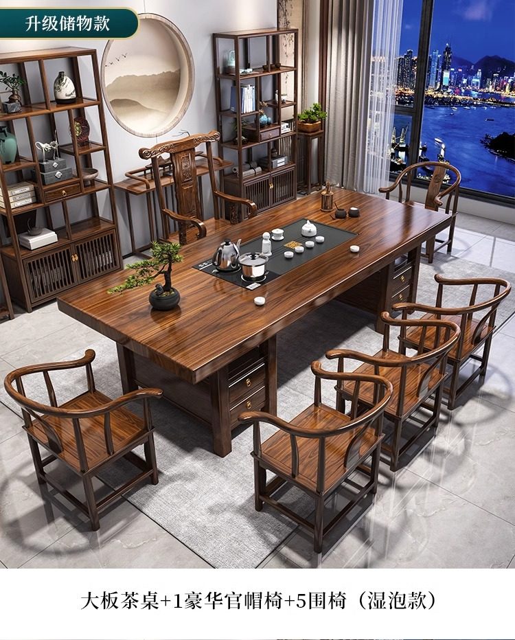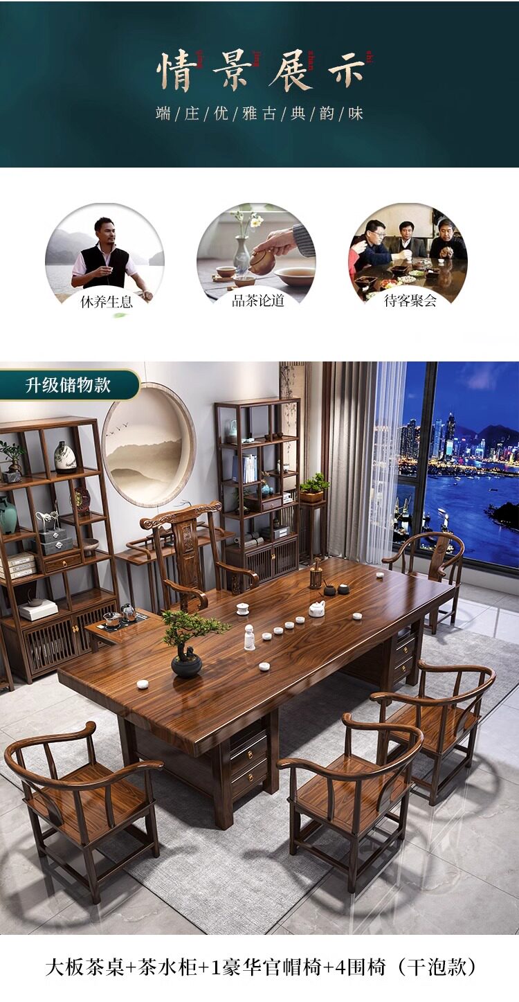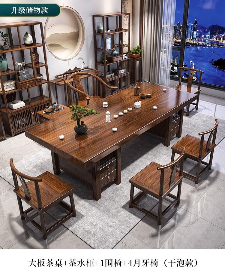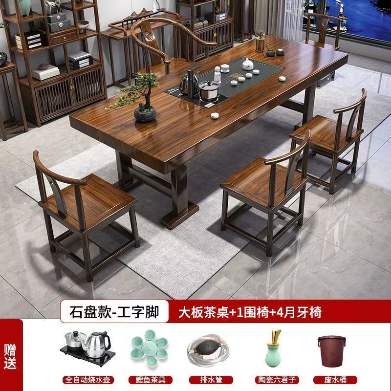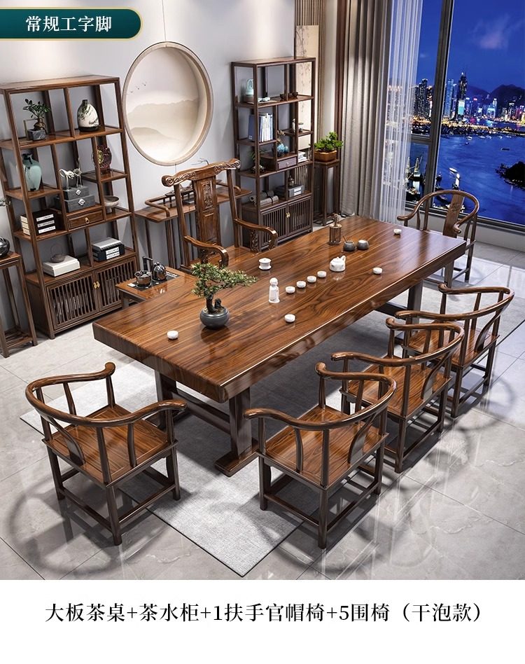 대형 플레이트 솔리드 우드 로그 티 테이블과 의자 세트 1 대 1 테이블 5 의자 새로운 중국식 커피 테이블 사무실 홈 티 테이블 1 대 1스토어 가기