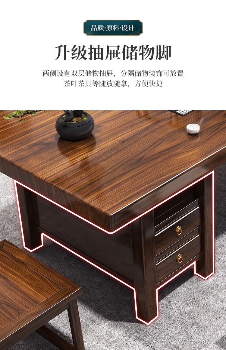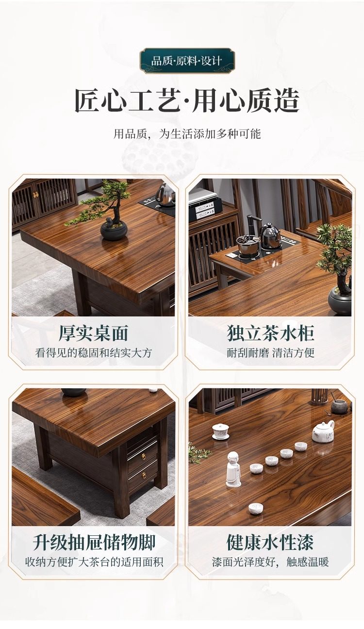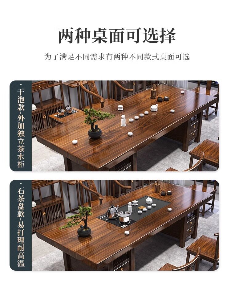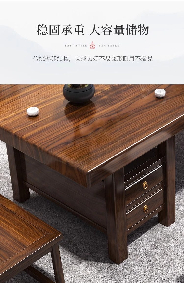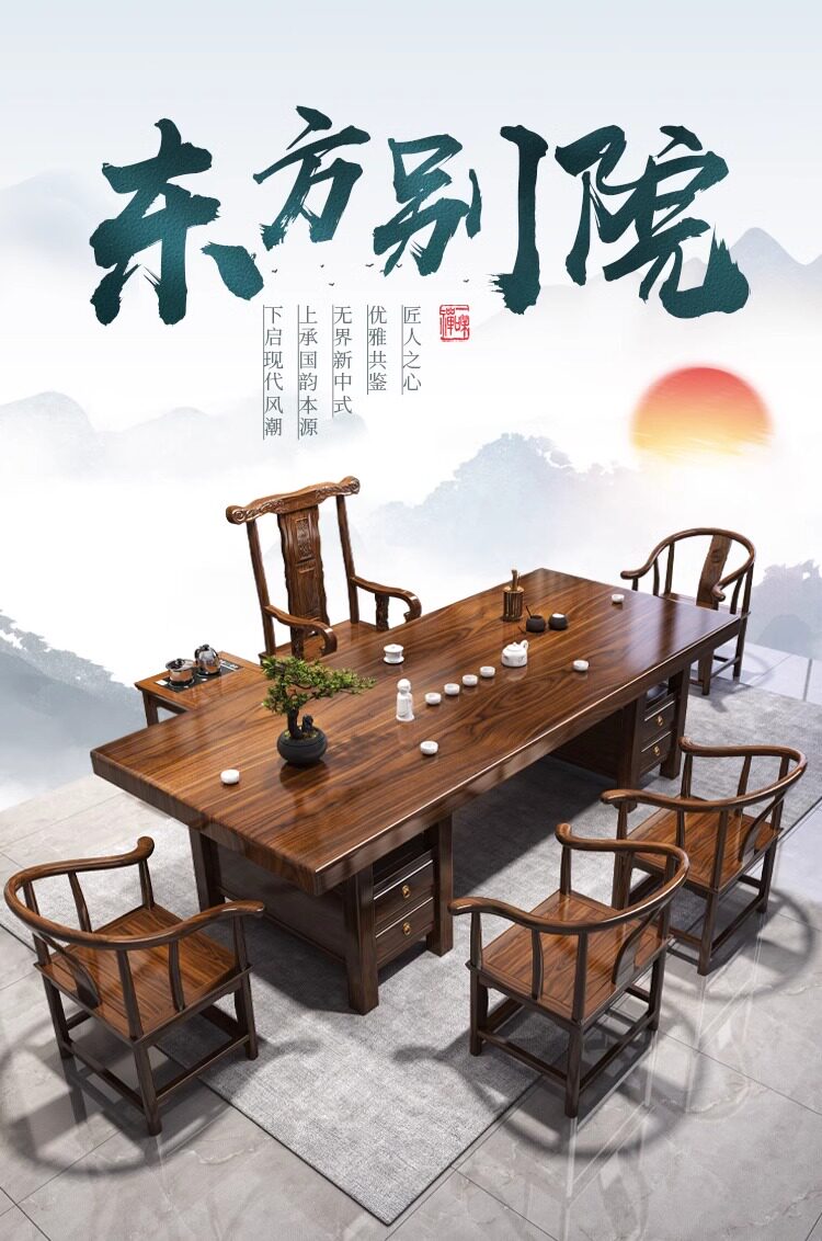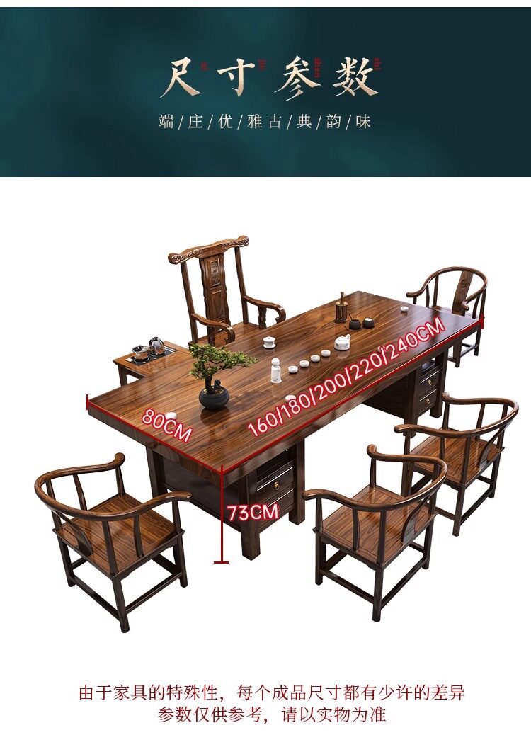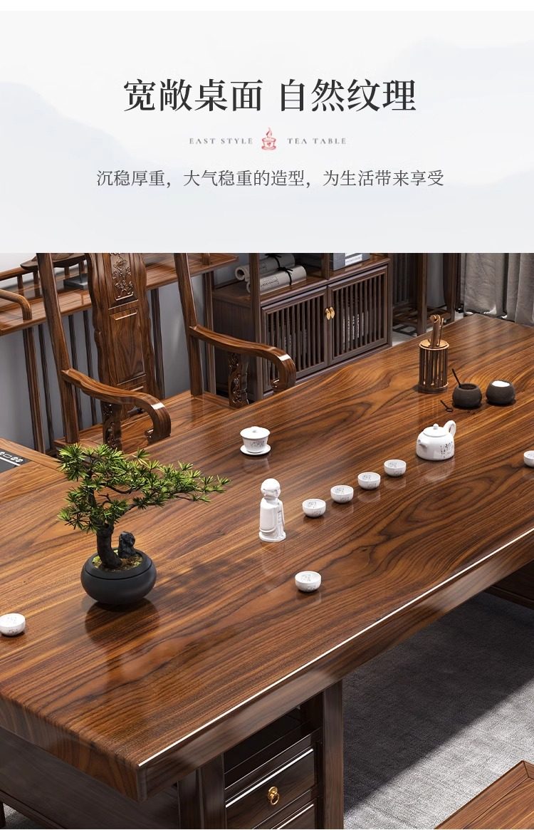 대형 플레이트 솔리드 우드 로그 티 테이블과 의자 세트 1 대 1 테이블 5 의자 새로운 중국식 커피 테이블 사무실 홈 티 테이블 1 대 1스토어 가기