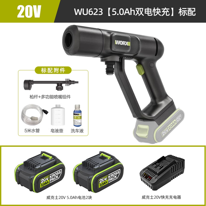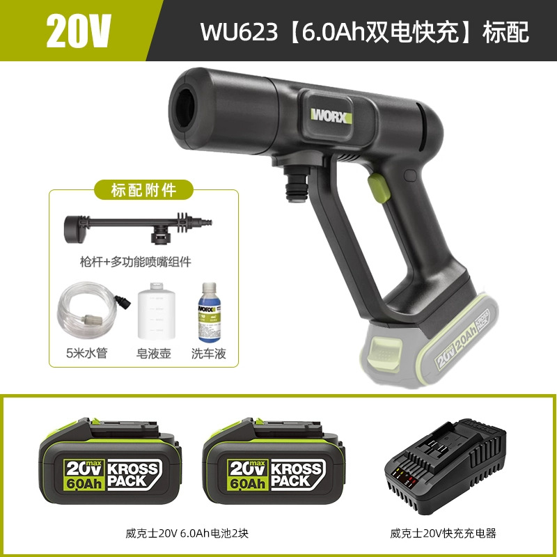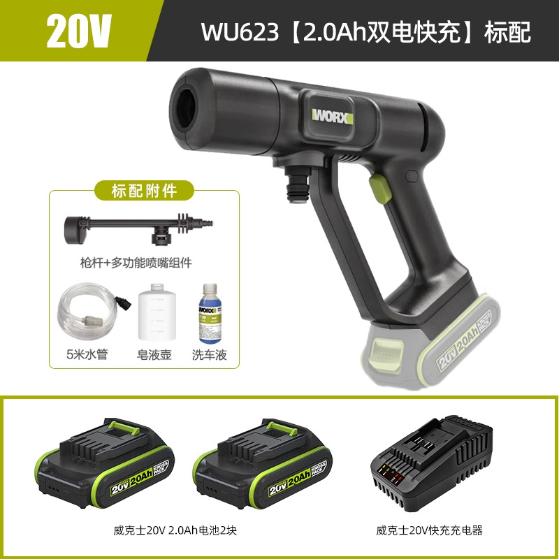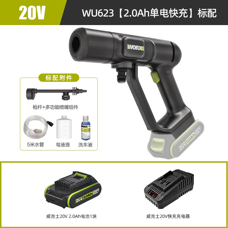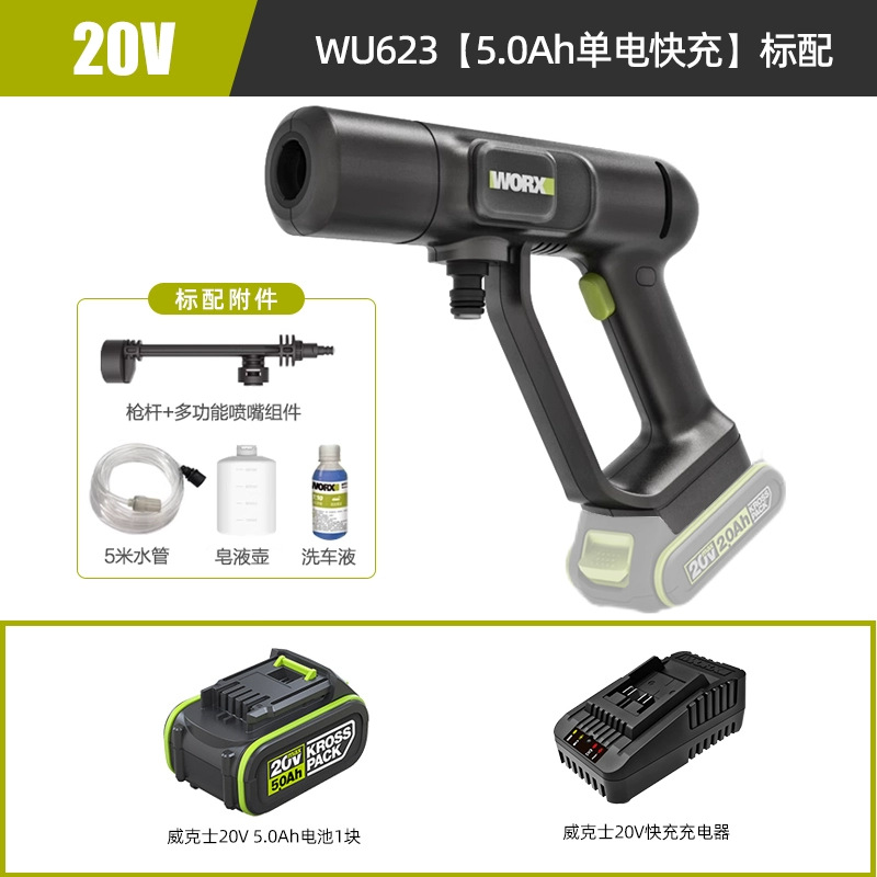 Wickes무선 자동차 세탁기 WU623 휴대용 가정용 고전압 리튬 물 총 고출력 자동차 세척 유물스토어 가기