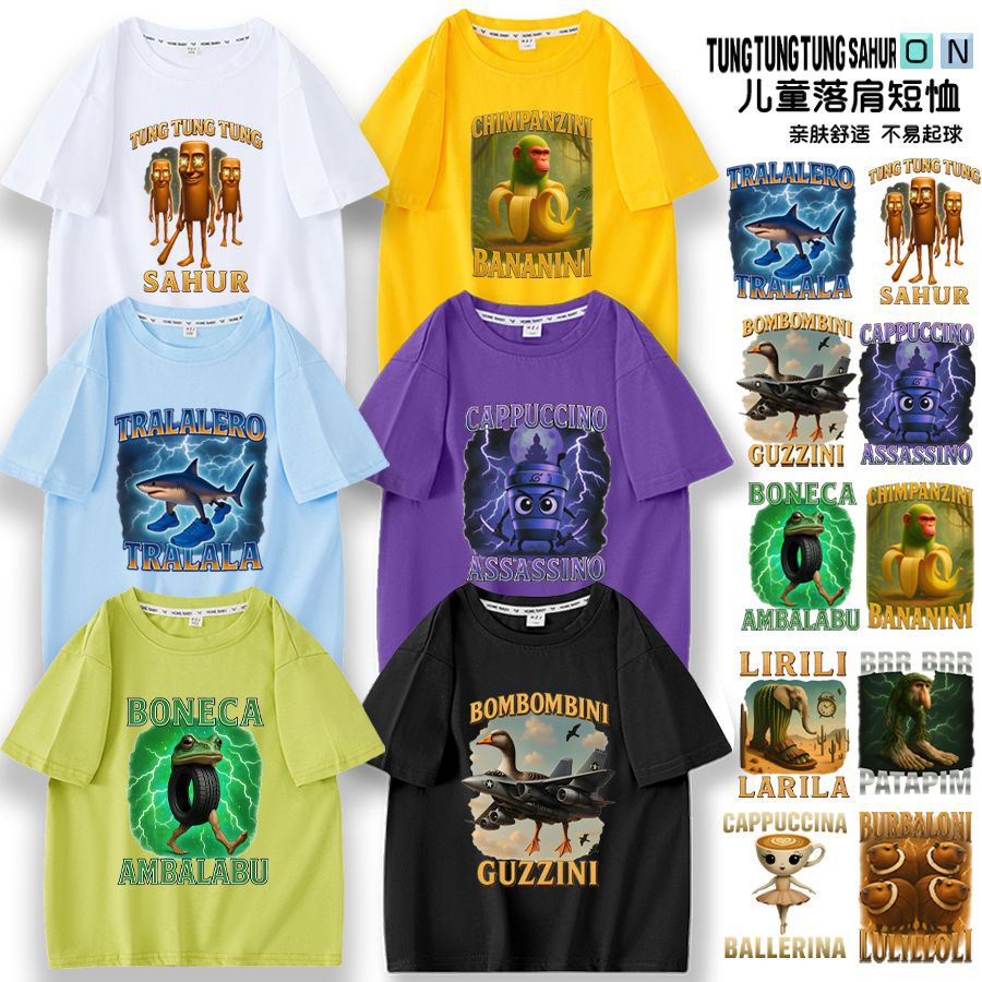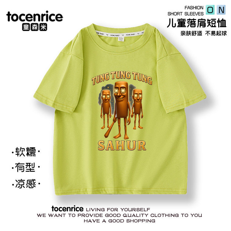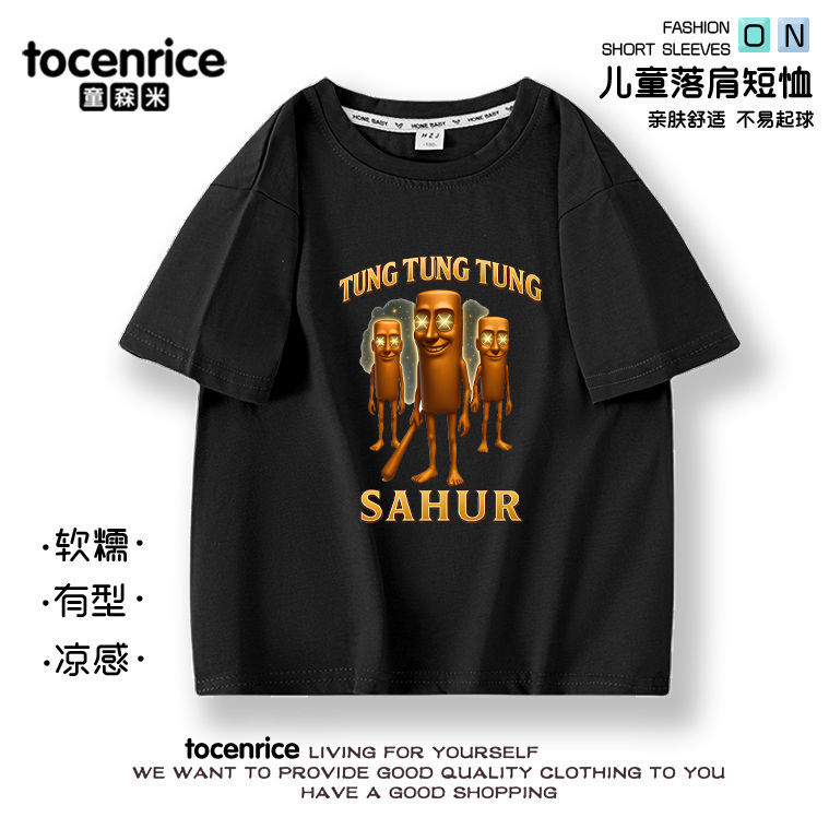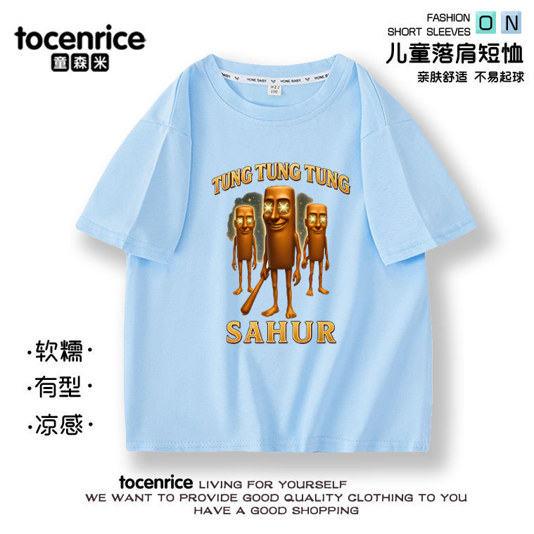 새로운 Tung Tung Tung Sahur 스틱 사람들 어린이 여름 면화 반팔 아기 옷스토어 가기