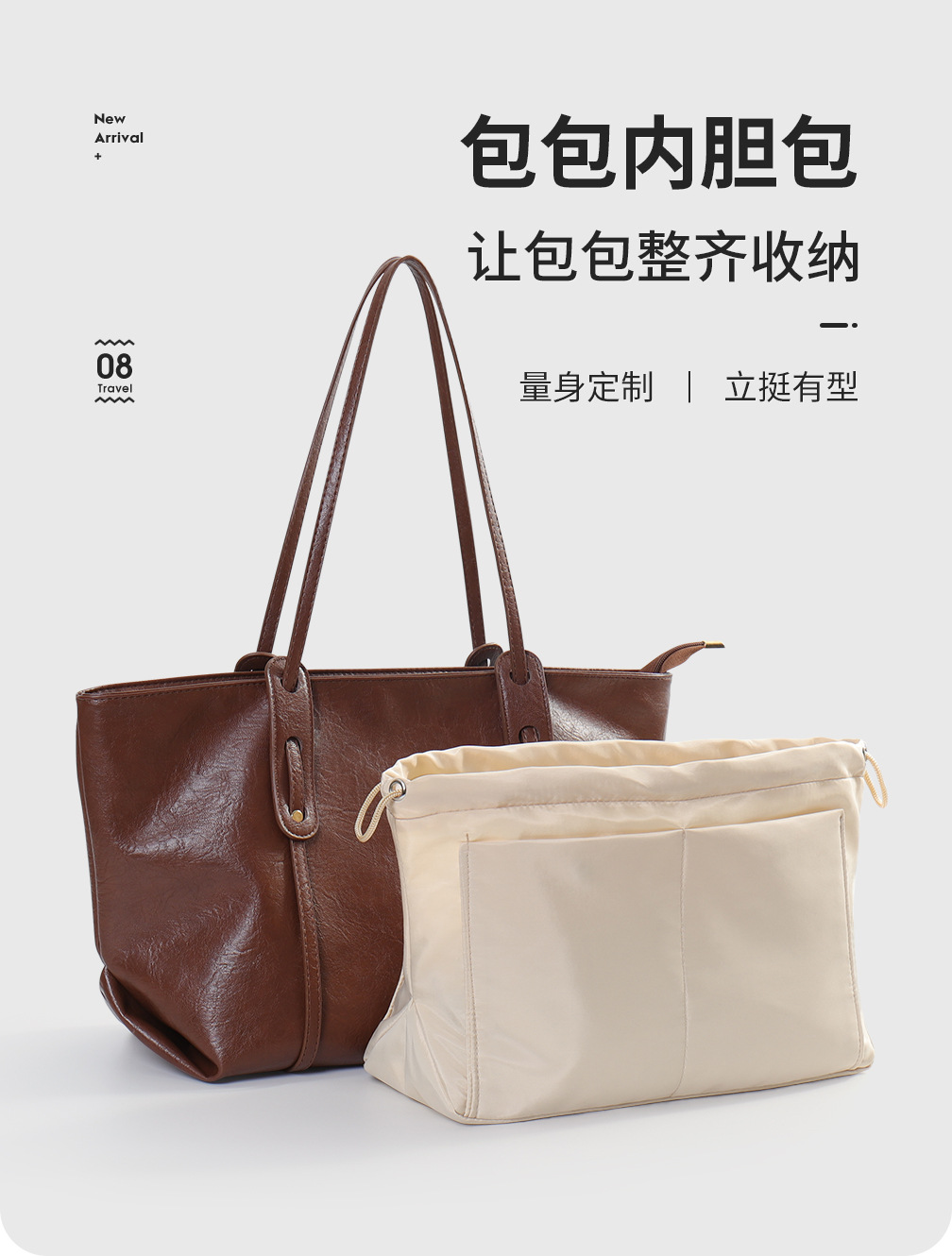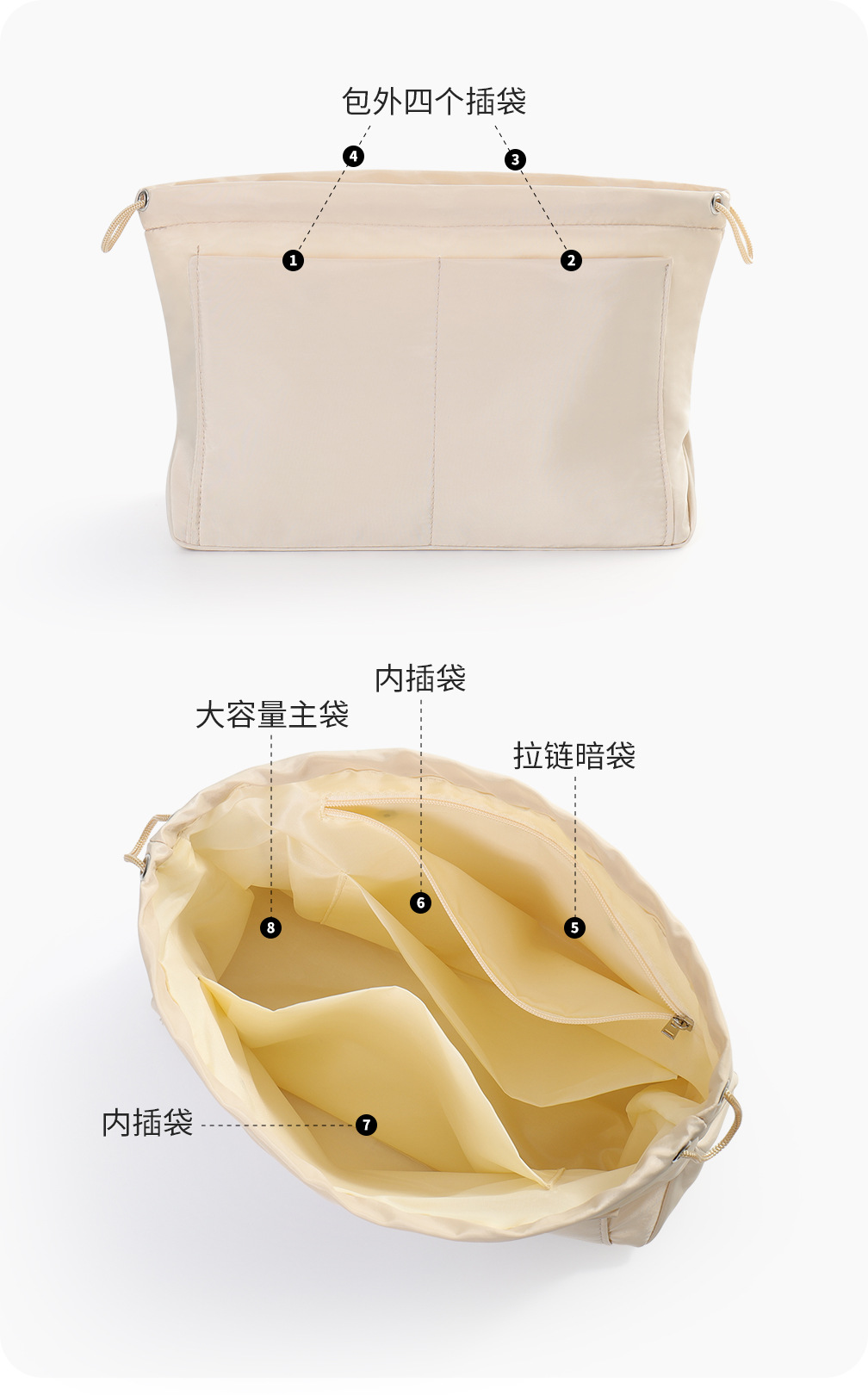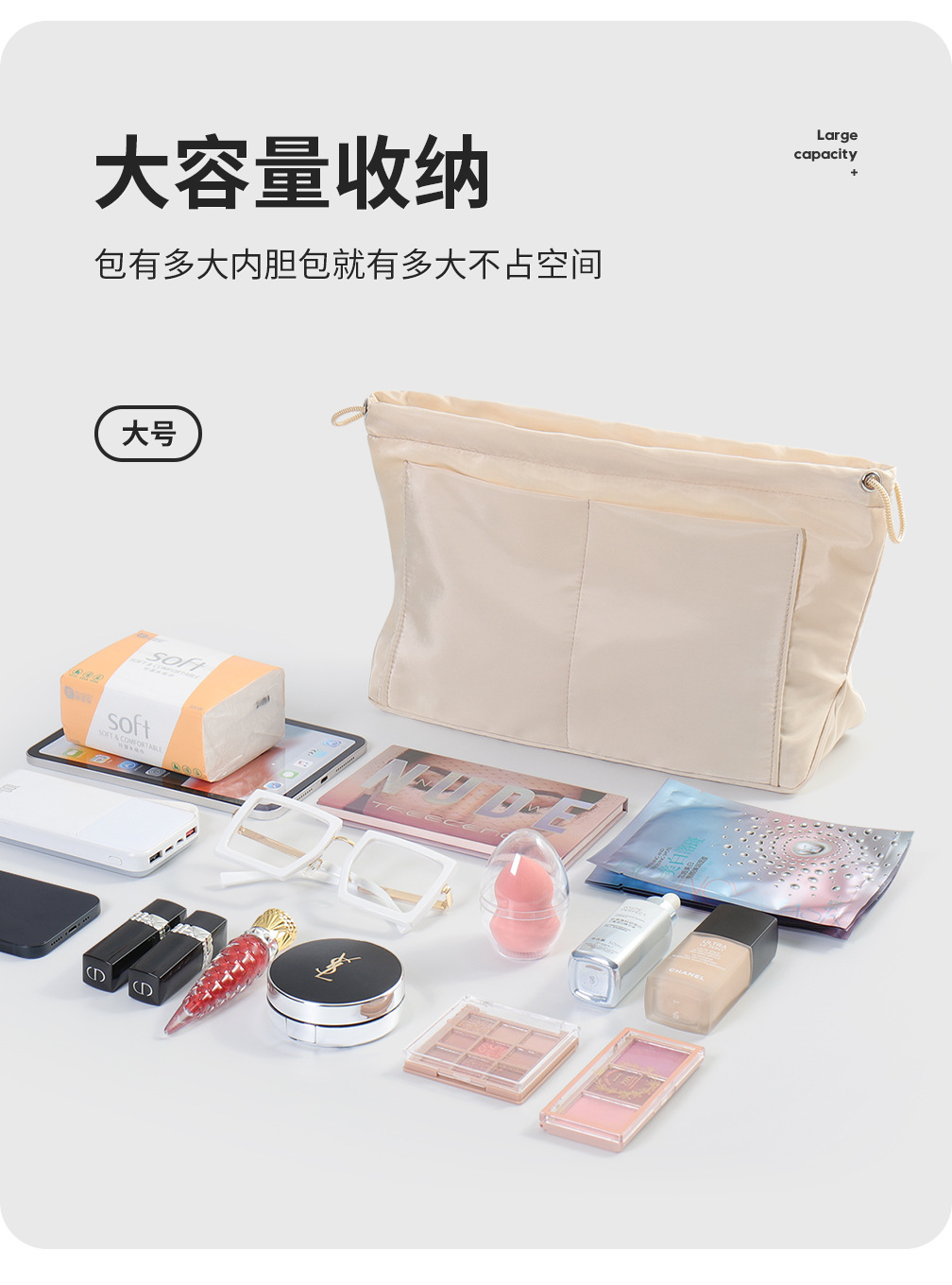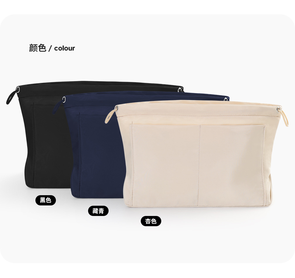 단색 입체화장품가방, 중간가방, 다중칸막이, 내부가방, 지퍼지지형, 분리형 중간가방, 정리가방, 수납가방