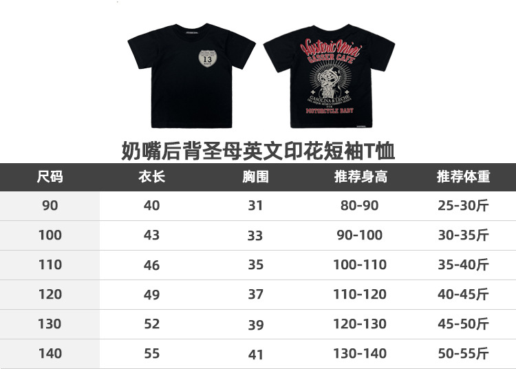 2025 새로운 블랙 슈퍼 조수 브랜드 젖꼭지 백 버진 영어 인쇄 짧은 소매 티셔츠 젖꼭지 어린이 최고 재고