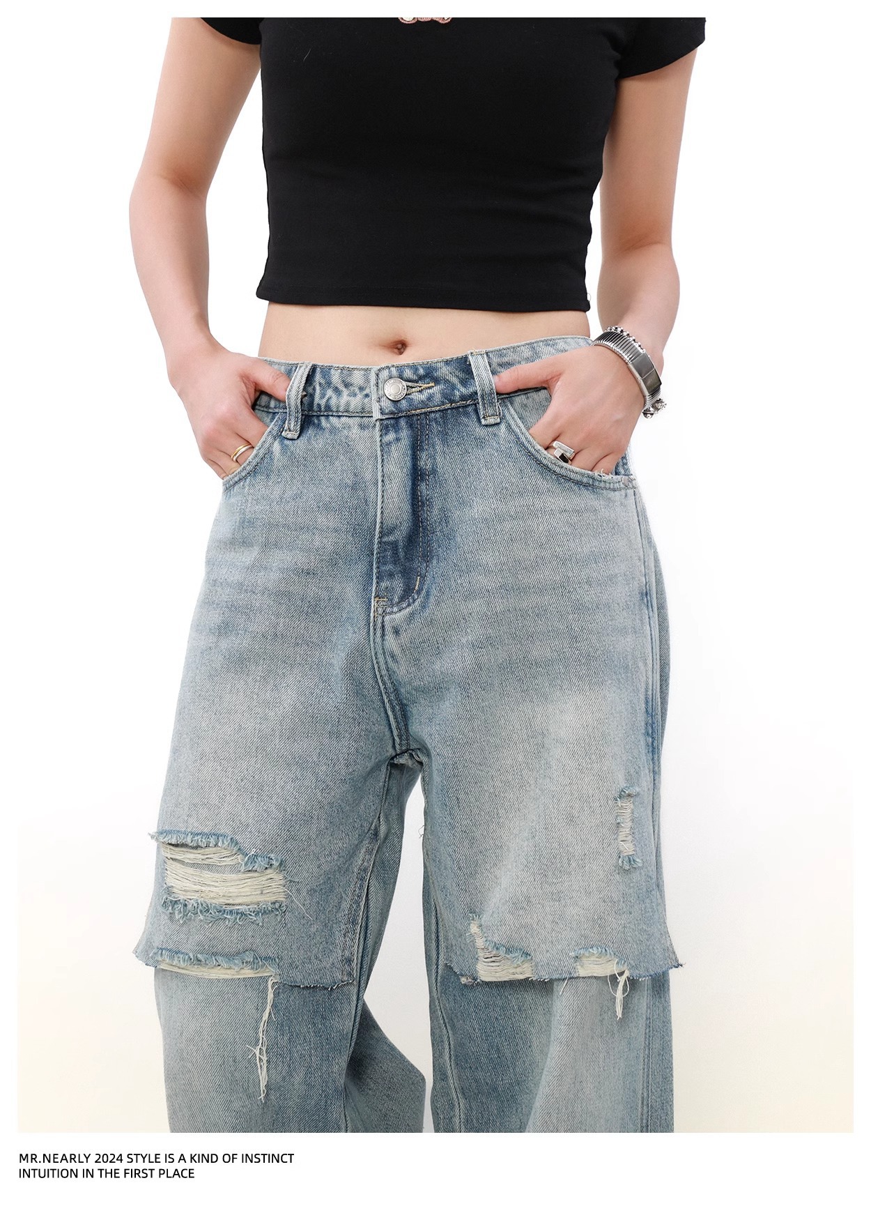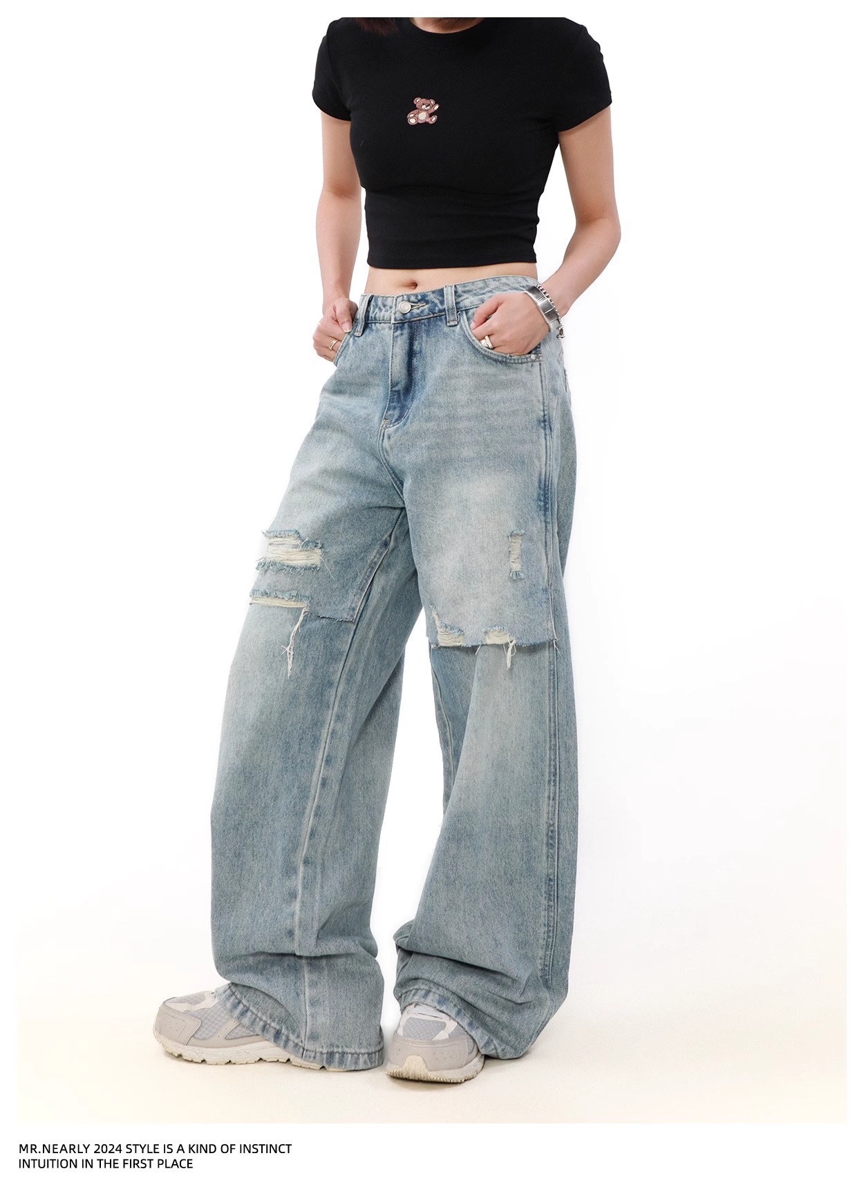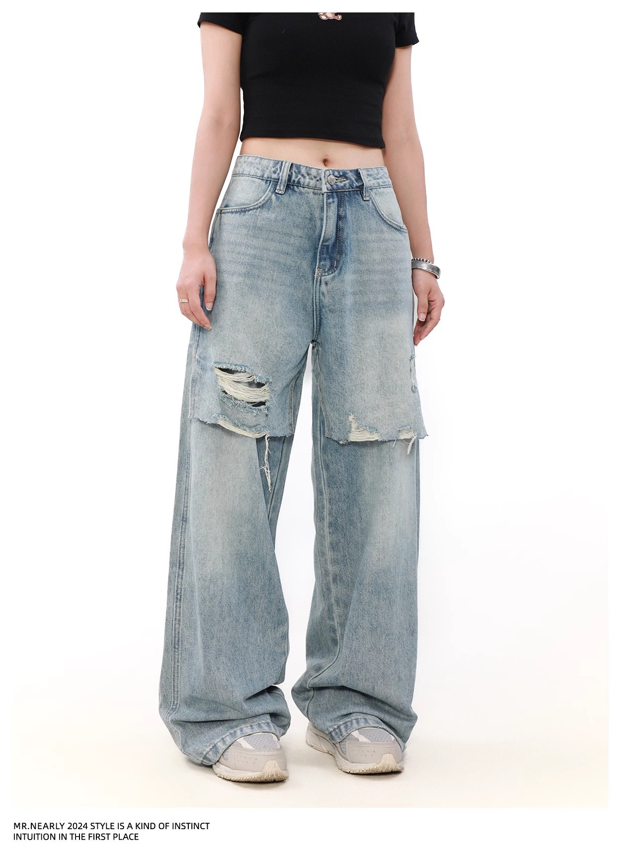 리핑 청바지 봄 유행 브랜드 패셔너블 루즈 스트레이트 거지 바지 미국 레트로 프라이드 스트리트 팬츠스토어 가기