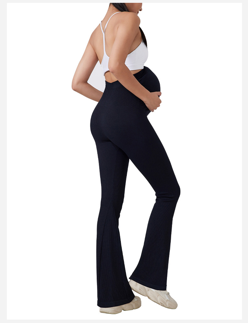 국경 간 임산부 바지는 높은 허리 엉덩이 리프팅 호른 요가 바지 높은 탄력 복부 타이트 배가없는 넓은 다리 바지