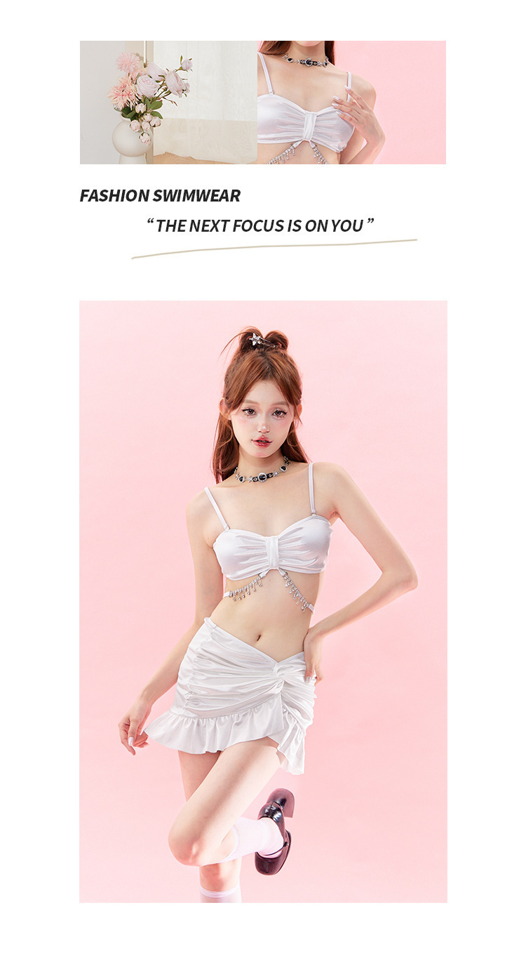 스파이스 걸스 새로운 순수한 욕망 스타일 분할 3 피스 수영복 여성용 섹시한 백리스 스커트 슬리밍 비치 비키니