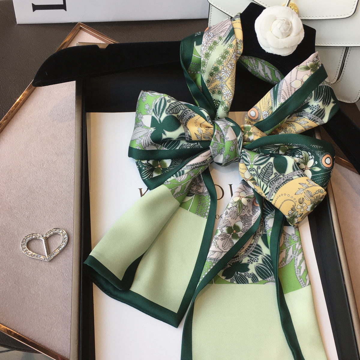 2025 봄 새로운 올 매치 그린 정글 실크 스카프 여자 긴 스카프 넥타이 가방 리본 얇은 좁은 와이