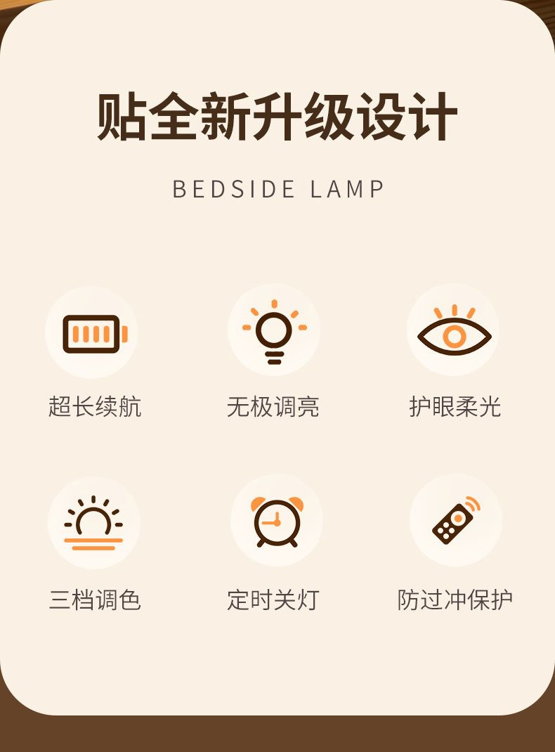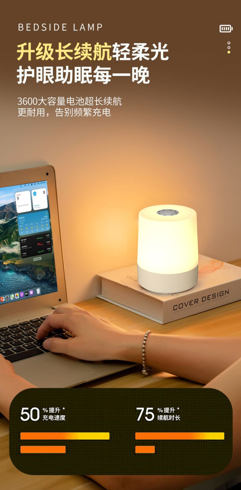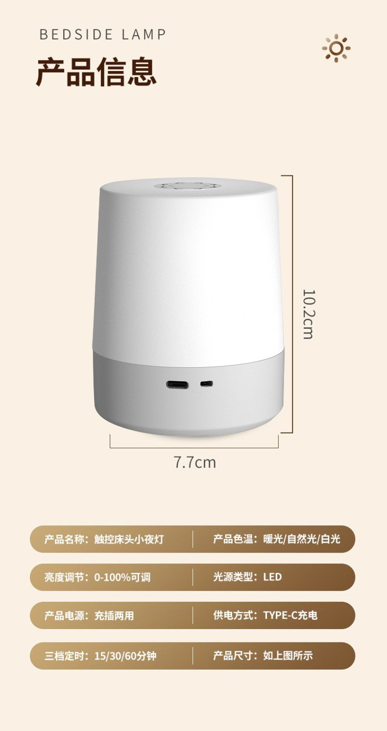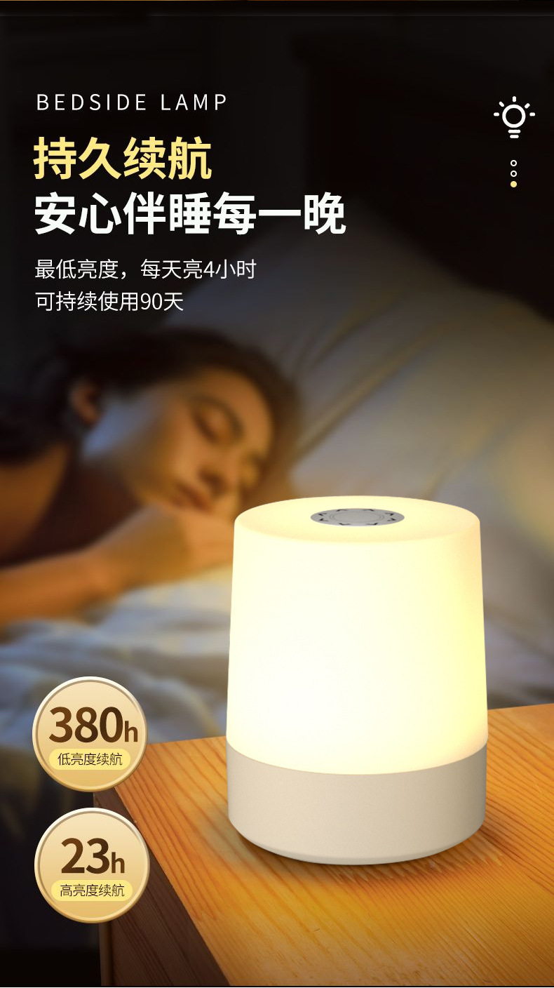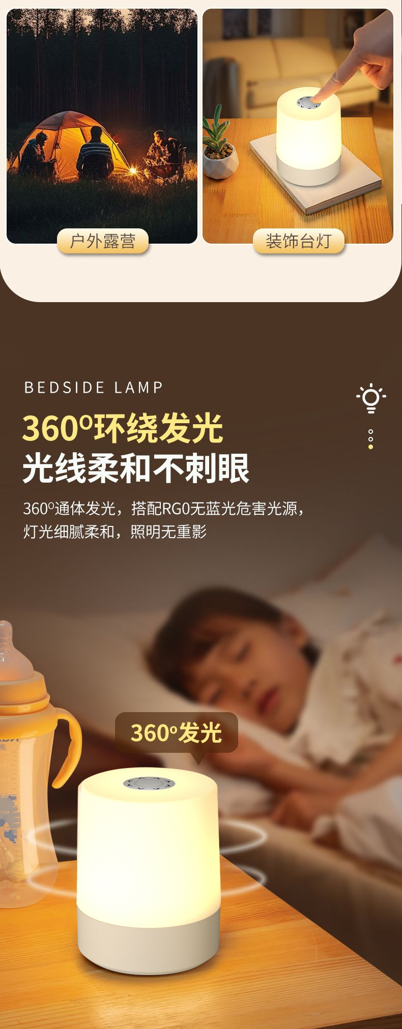 LED 충전식 터치 램프, 야간 수유용 아기 침대 옆 램프, 기숙사 분위기 조명, 터치 조절 가능