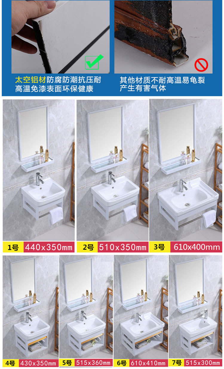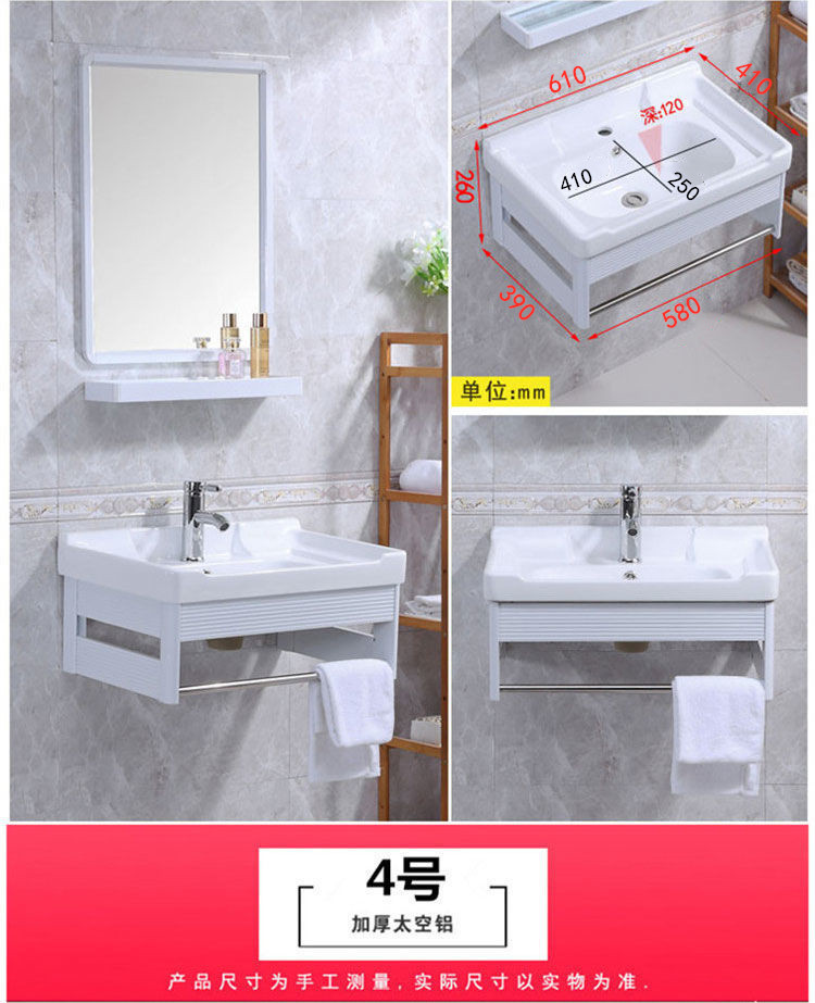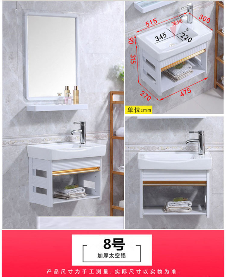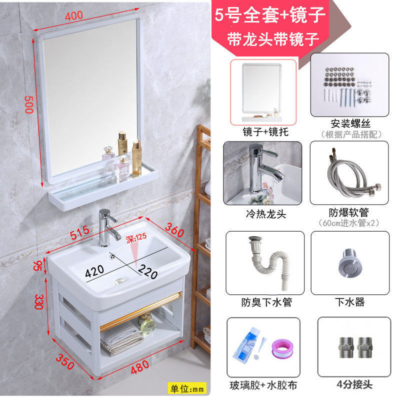 가정용 소형 아파트 워시 분지 캐비닛 조합 간단한 세라믹 세면기 벽 장착 공간 알루미늄 욕실 캐비닛 세탁기