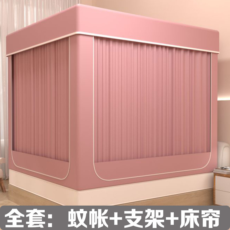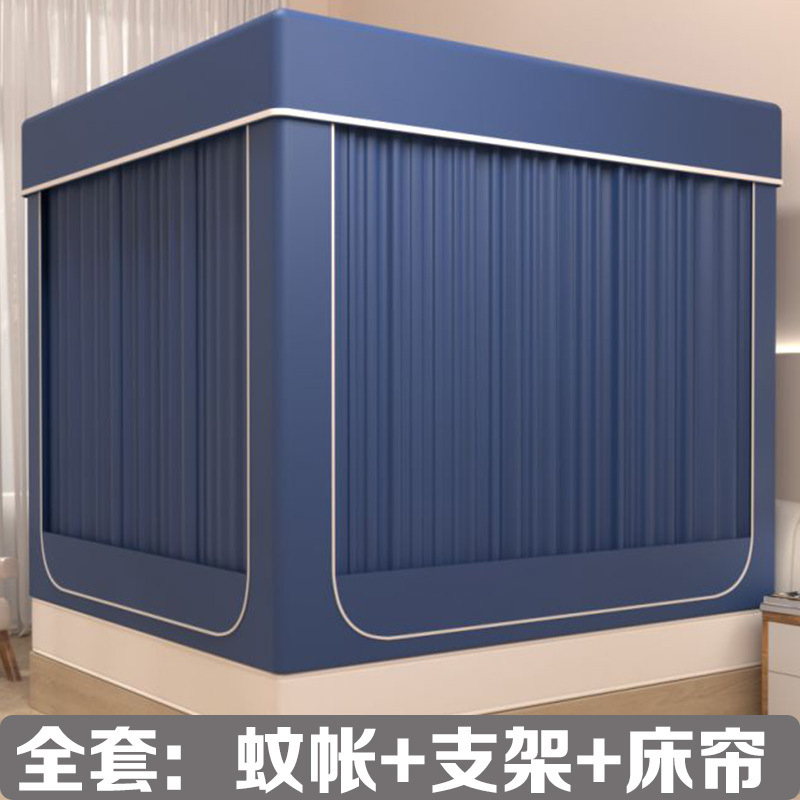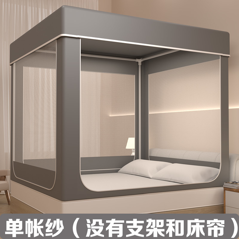 고급 가정용 방진 및 차광 일체형 침대 커튼, 낙하 방지 모기장, 3개의 도어가 있는 암호화된 몽골리안 텐트 침대 커튼, 완전 밀폐형스토어 가기