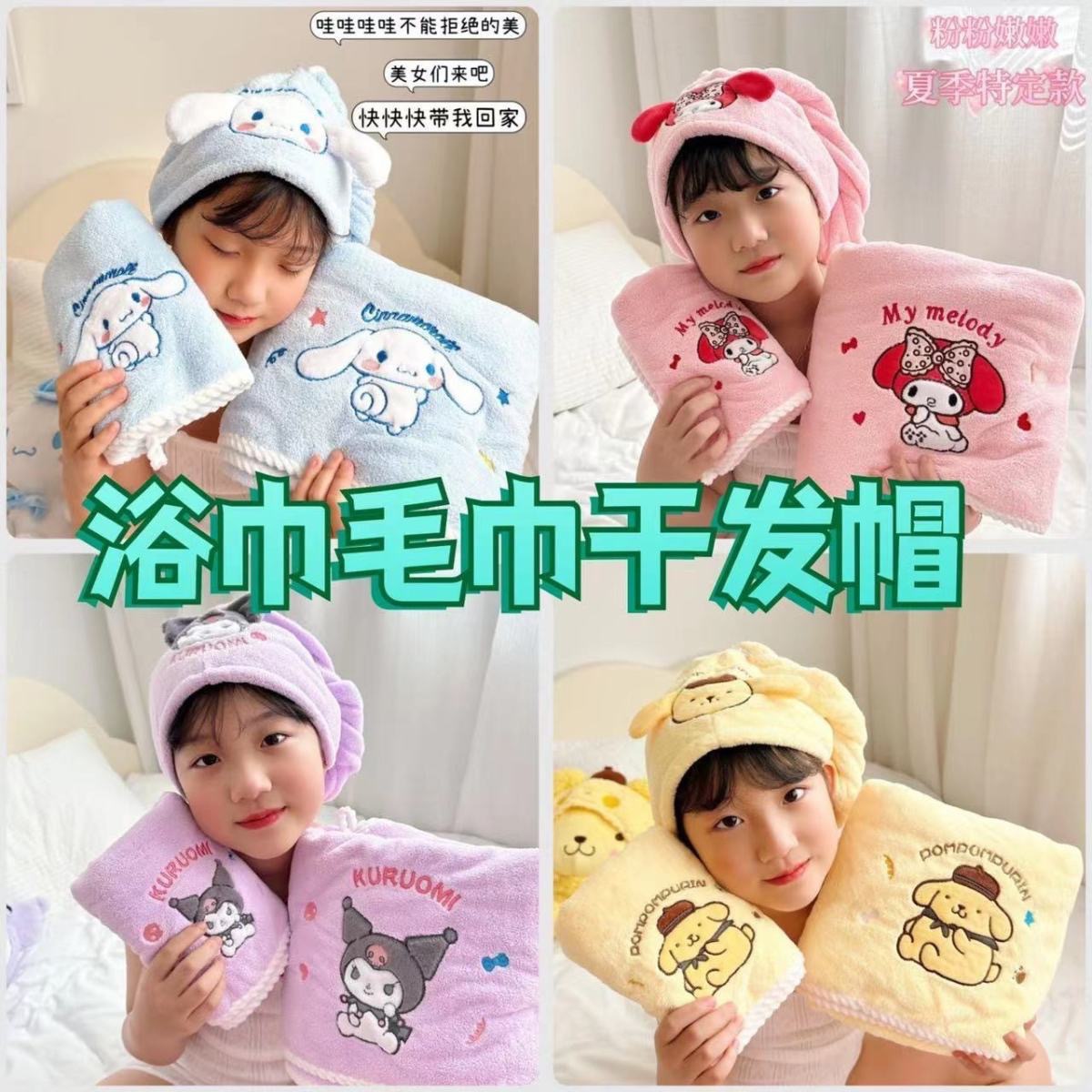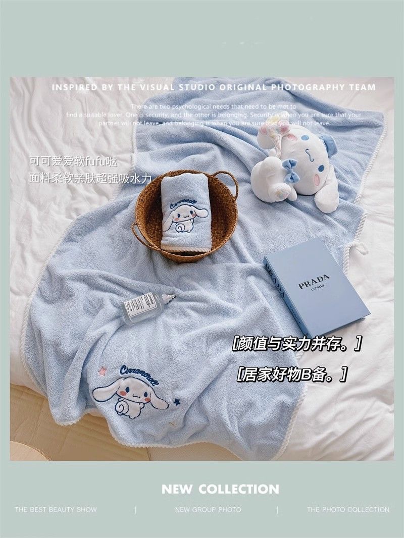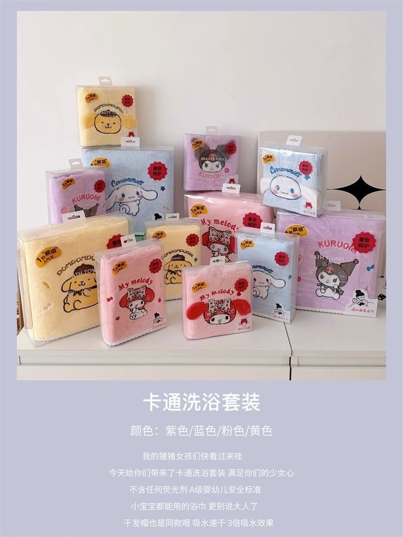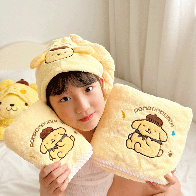 만화 산리오 푸딩독 타월 목욕타월 세안타월 헤어드라이캡 부드럽고 흡수력 좋은 어린이 목욕타월 기념품