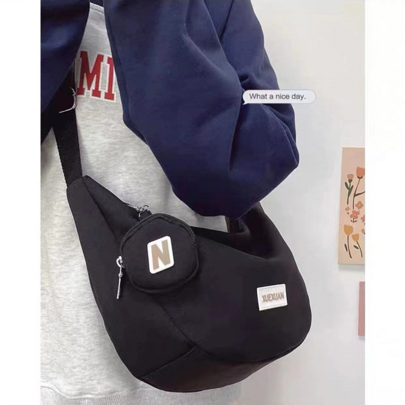 나일론 방수 캔버스 가방, 패셔너블한 가방, 봄 여름 문학 만두 가방, 대학생 클래스 숄더 크로스백스토어 가기