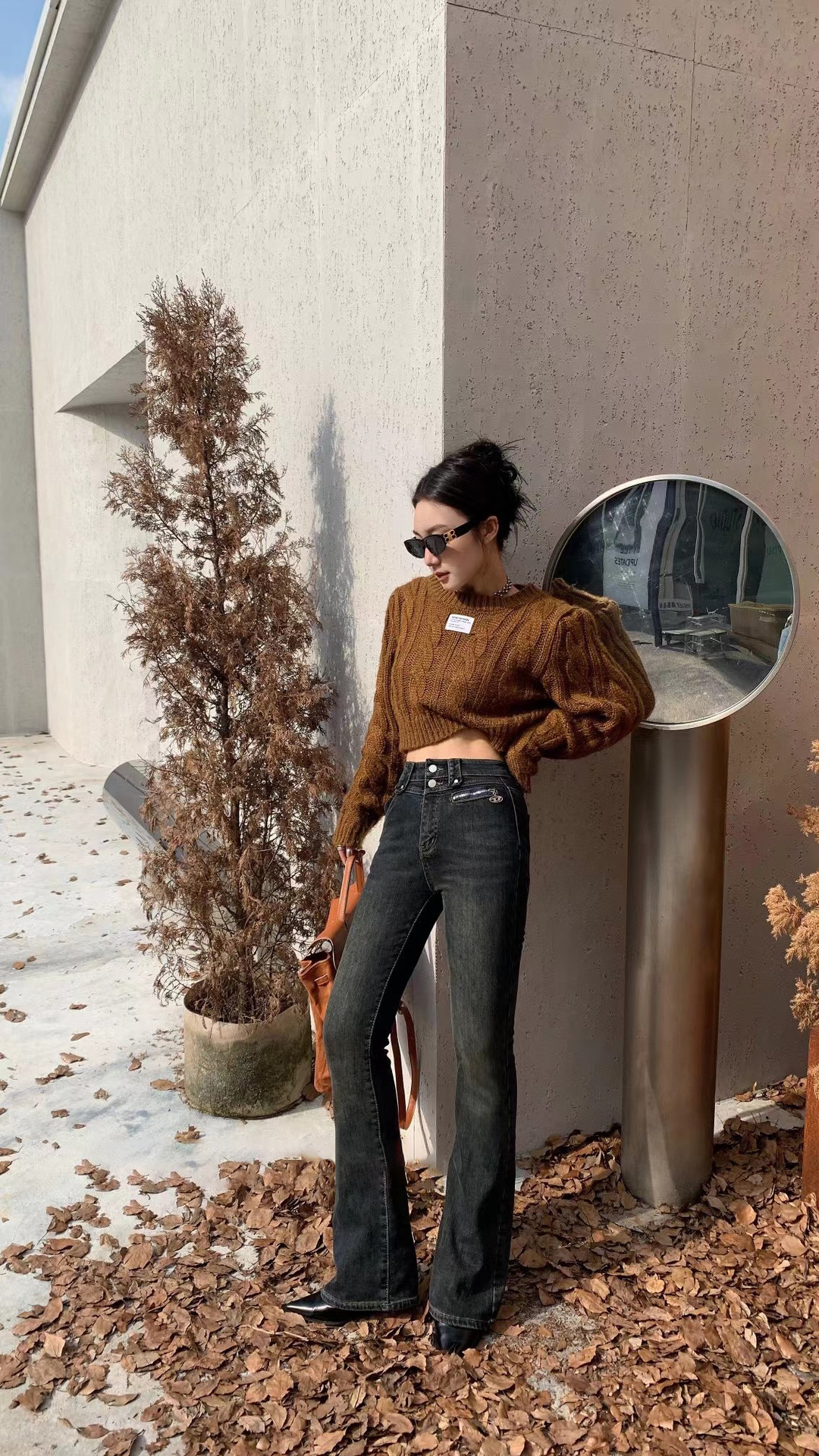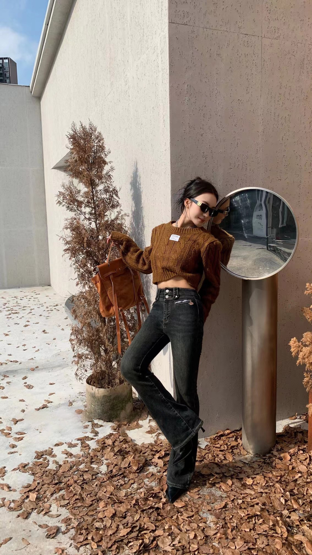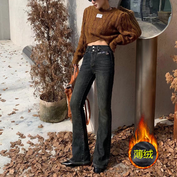 기모 새로운 유행 스파이스 걸스 마이크로 라 청바지 여성의 따뜻한 높은 허리 슬리밍 유행 바지 2023 가을 겨울스토어 가기