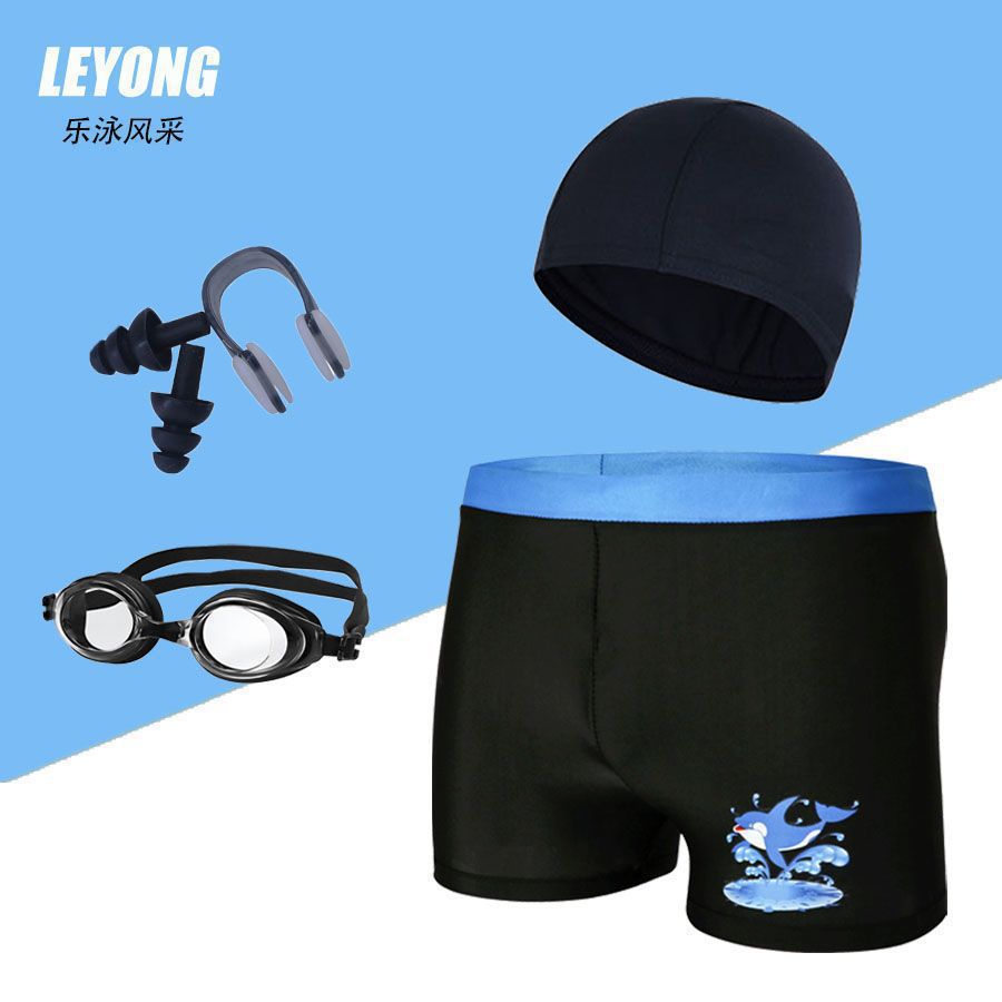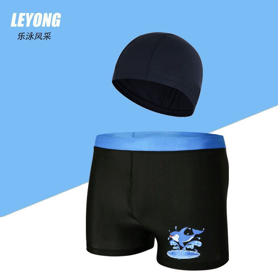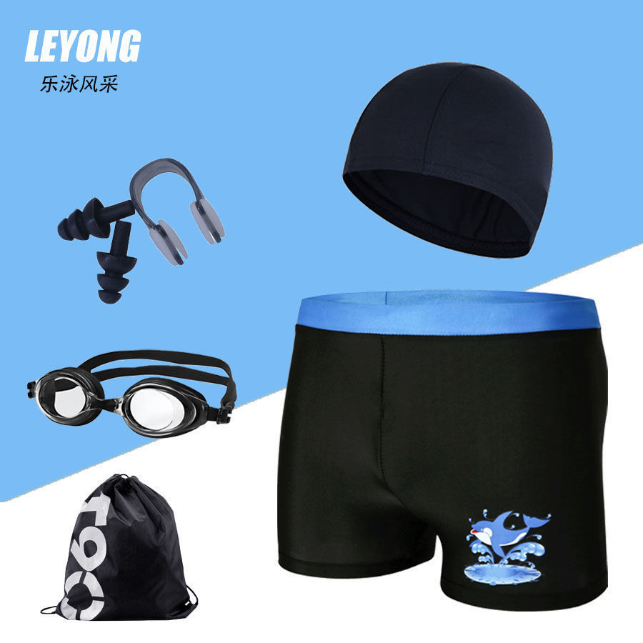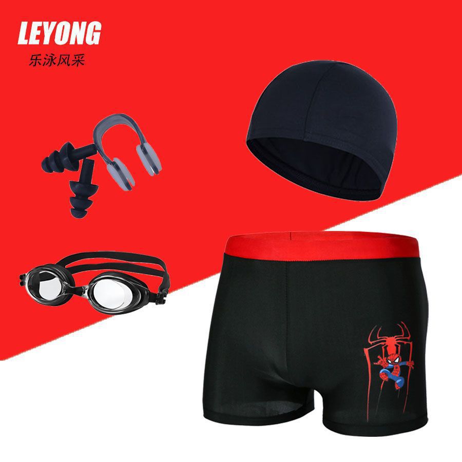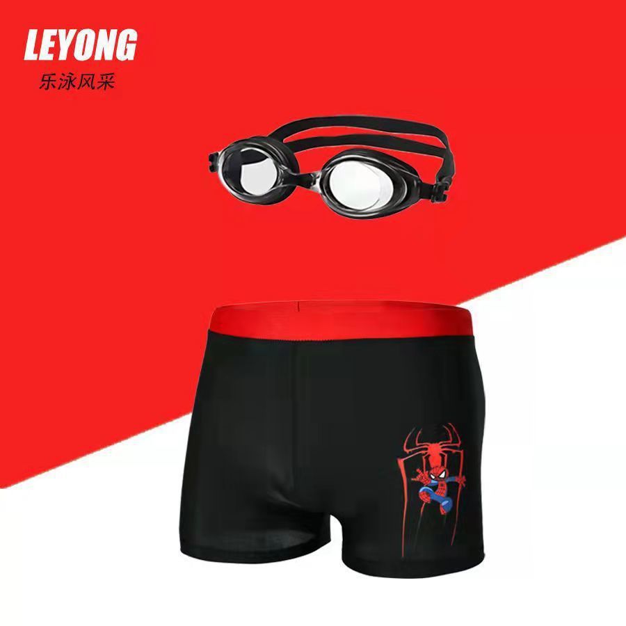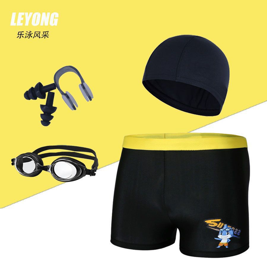 어린이 수영복 및 수영복, 만화 프린트, 소년용 해변 수영복, 수영 고글, 실리콘 모자, 사각 팬티, 내구성
