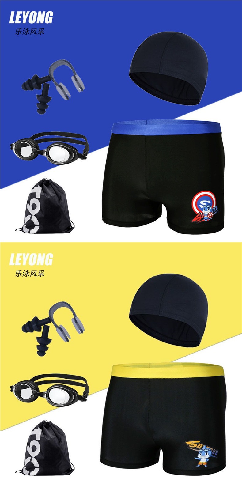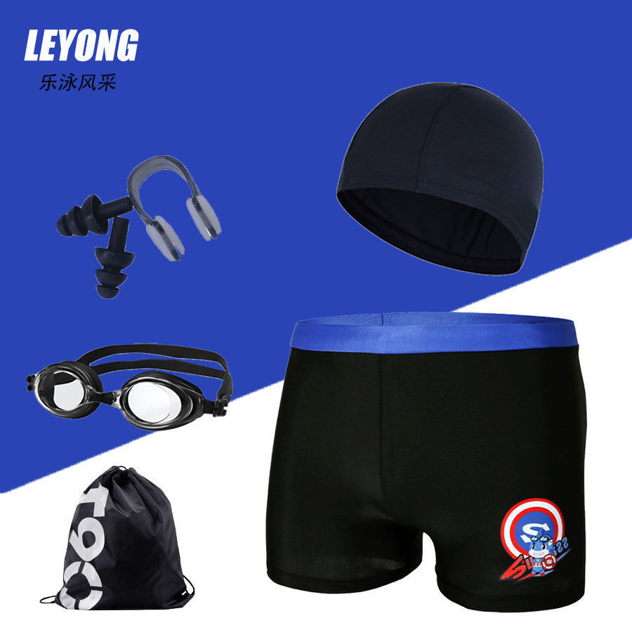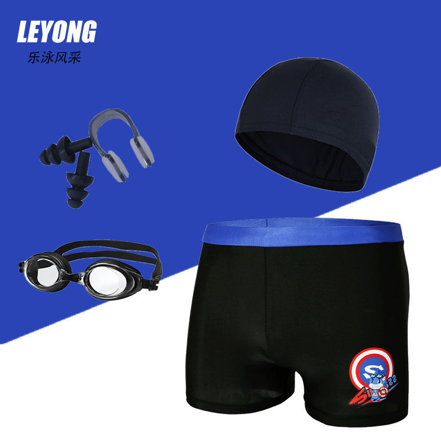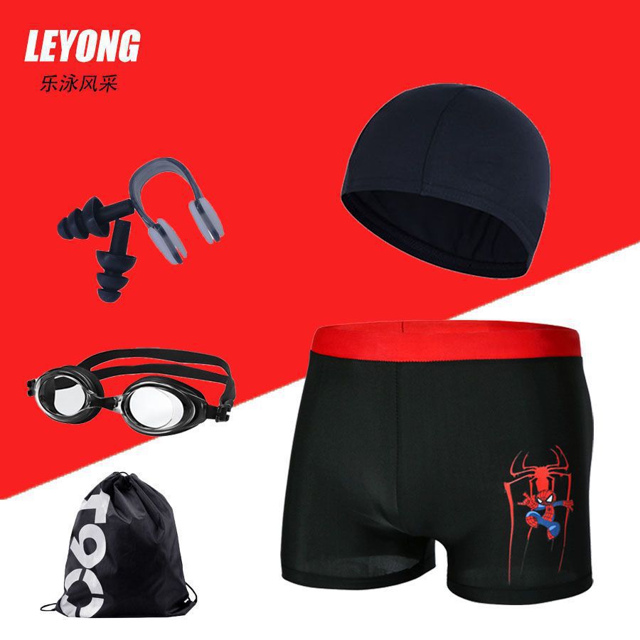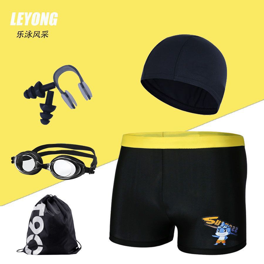 어린이 수영복 및 수영복, 만화 프린트, 소년용 해변 수영복, 수영 고글, 실리콘 모자, 사각 팬티, 내구성
