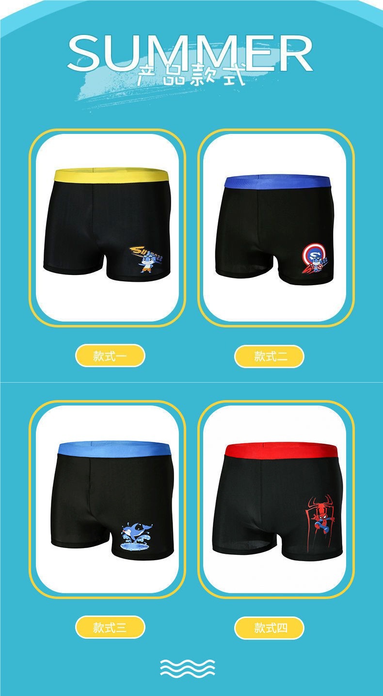 어린이 수영복 및 수영복, 만화 프린트, 소년용 해변 수영복, 수영 고글, 실리콘 모자, 사각 팬티, 내구성스토어 가기