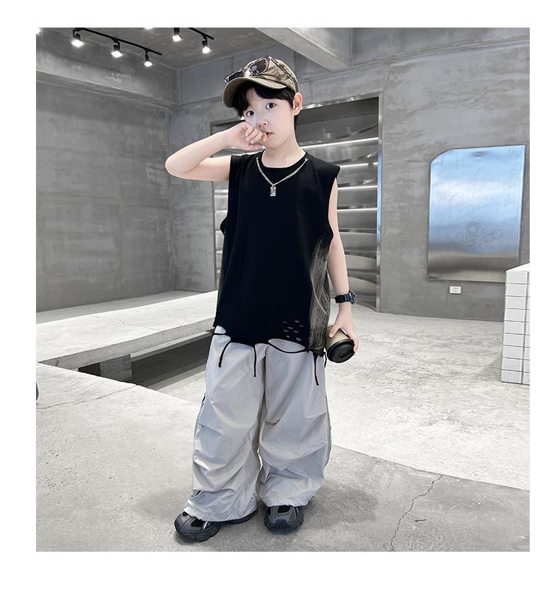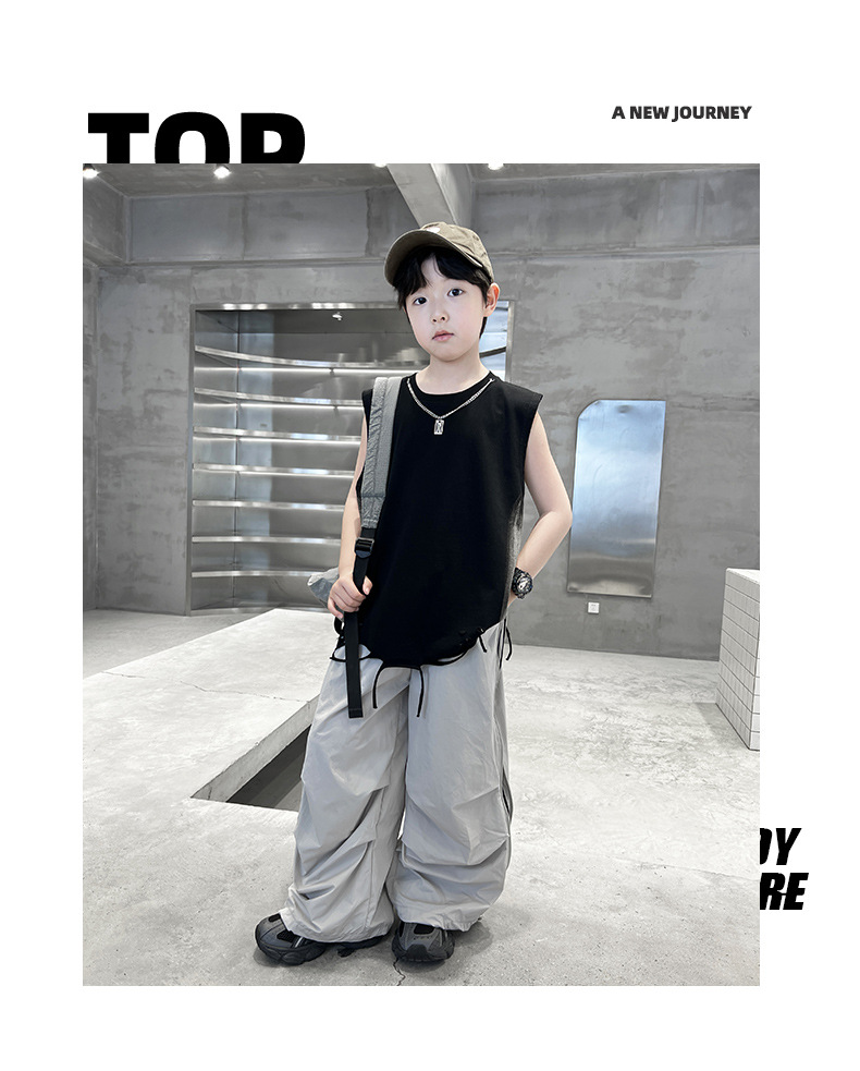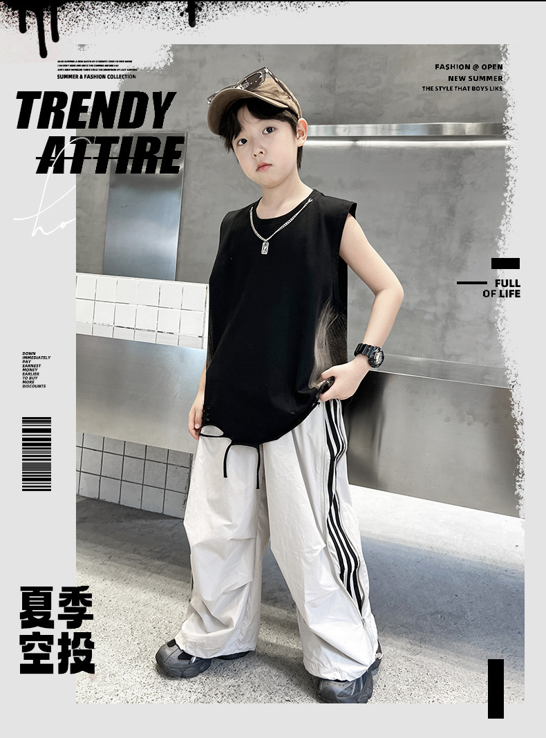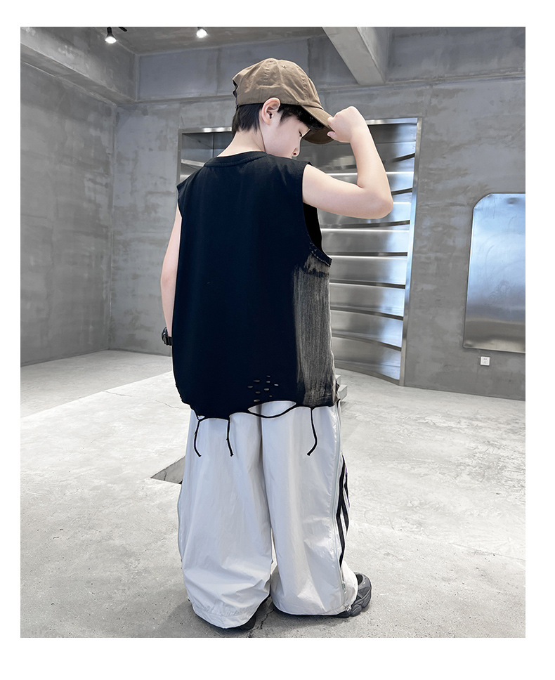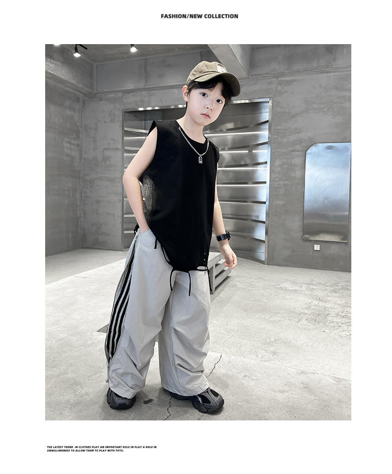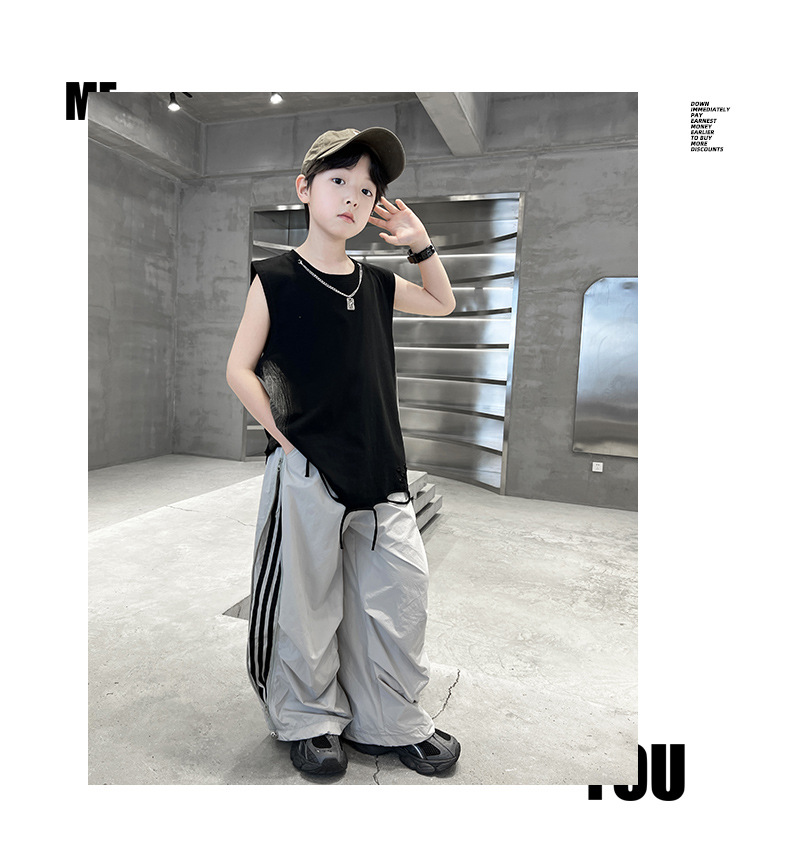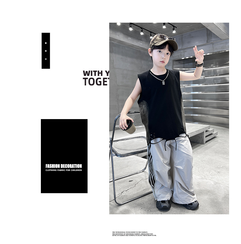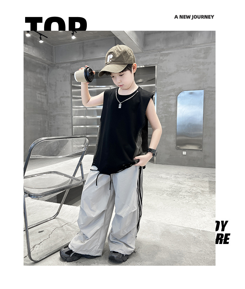 여름 새로운 Big Boys Tassel Vest 아동복 어린이 소년 민소매 티셔츠 조끼 쿨 쿨 크로스 국경스토어 가기