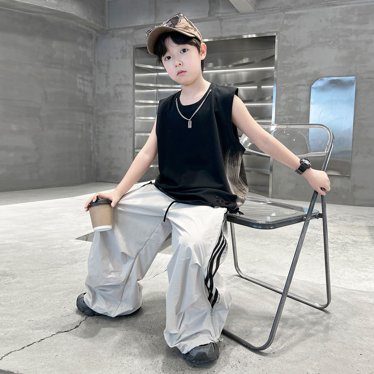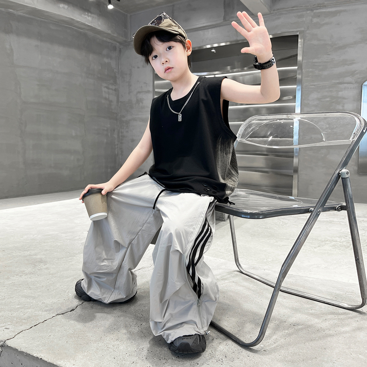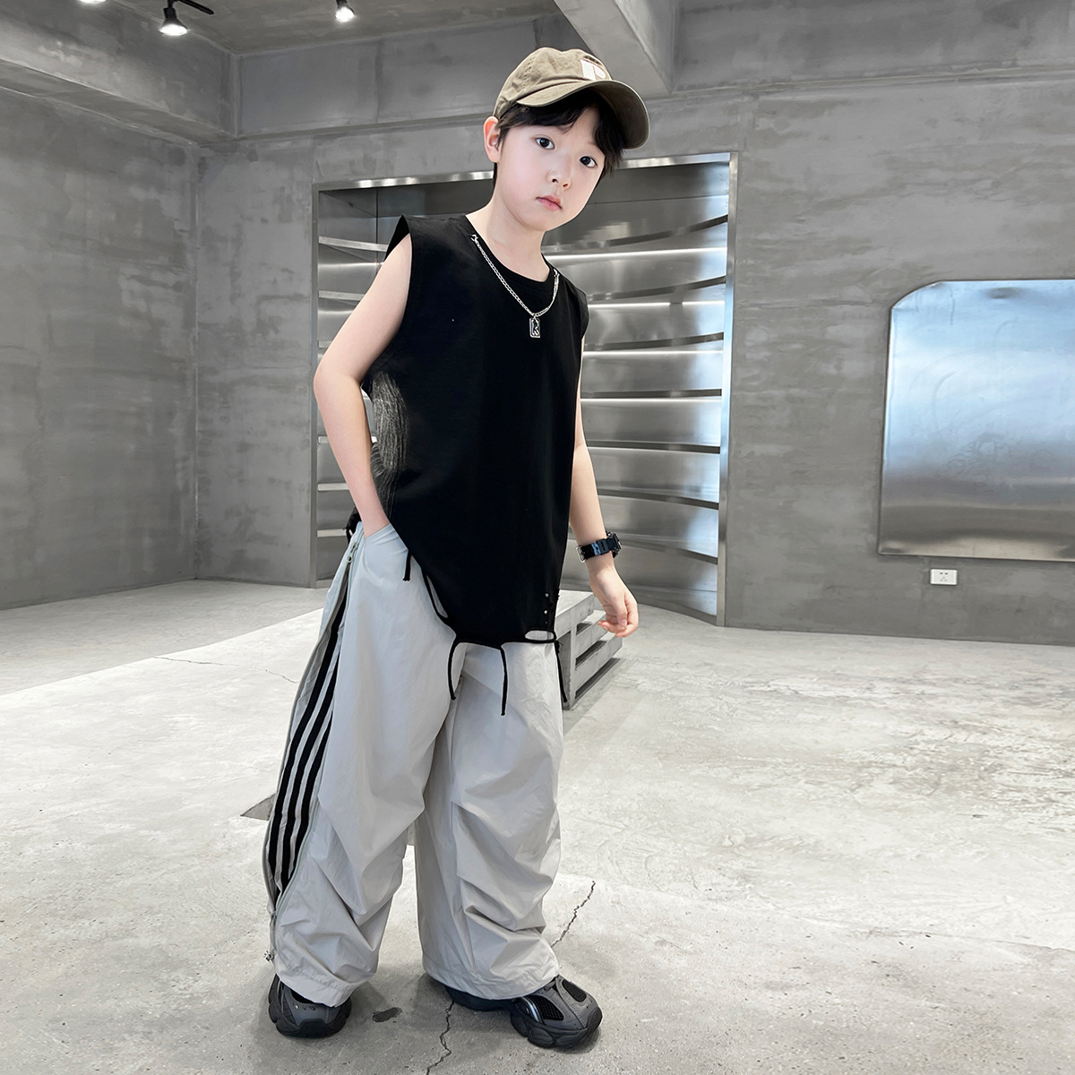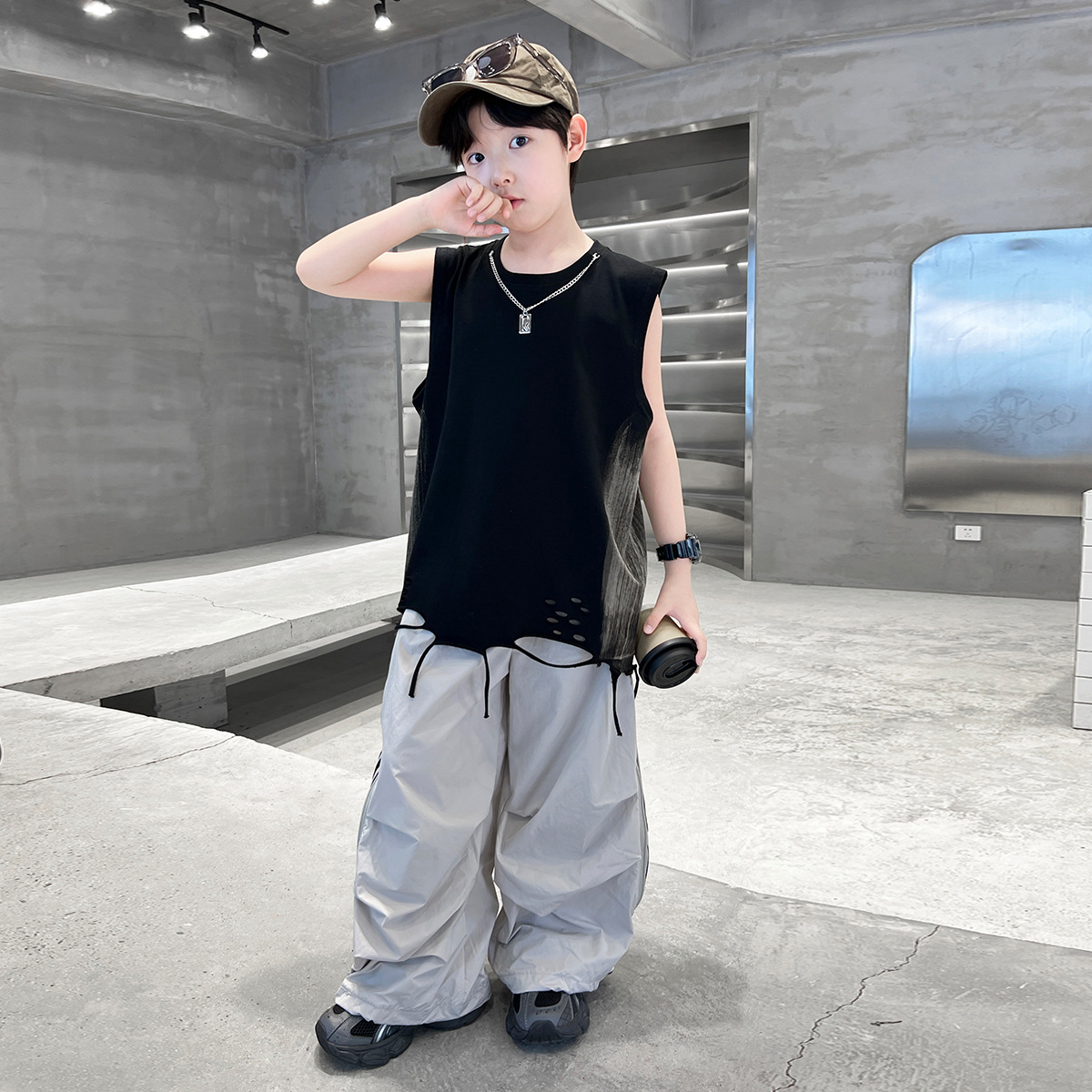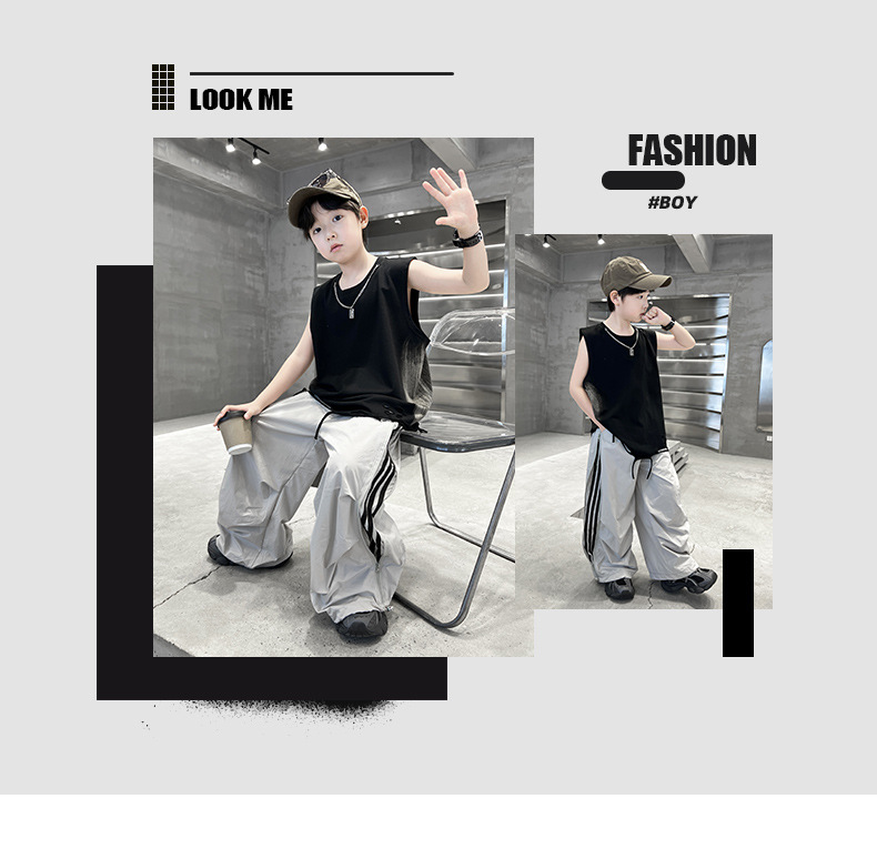 여름 새로운 Big Boys Tassel Vest 아동복 어린이 소년 민소매 티셔츠 조끼 쿨 쿨 크로스 국경스토어 가기