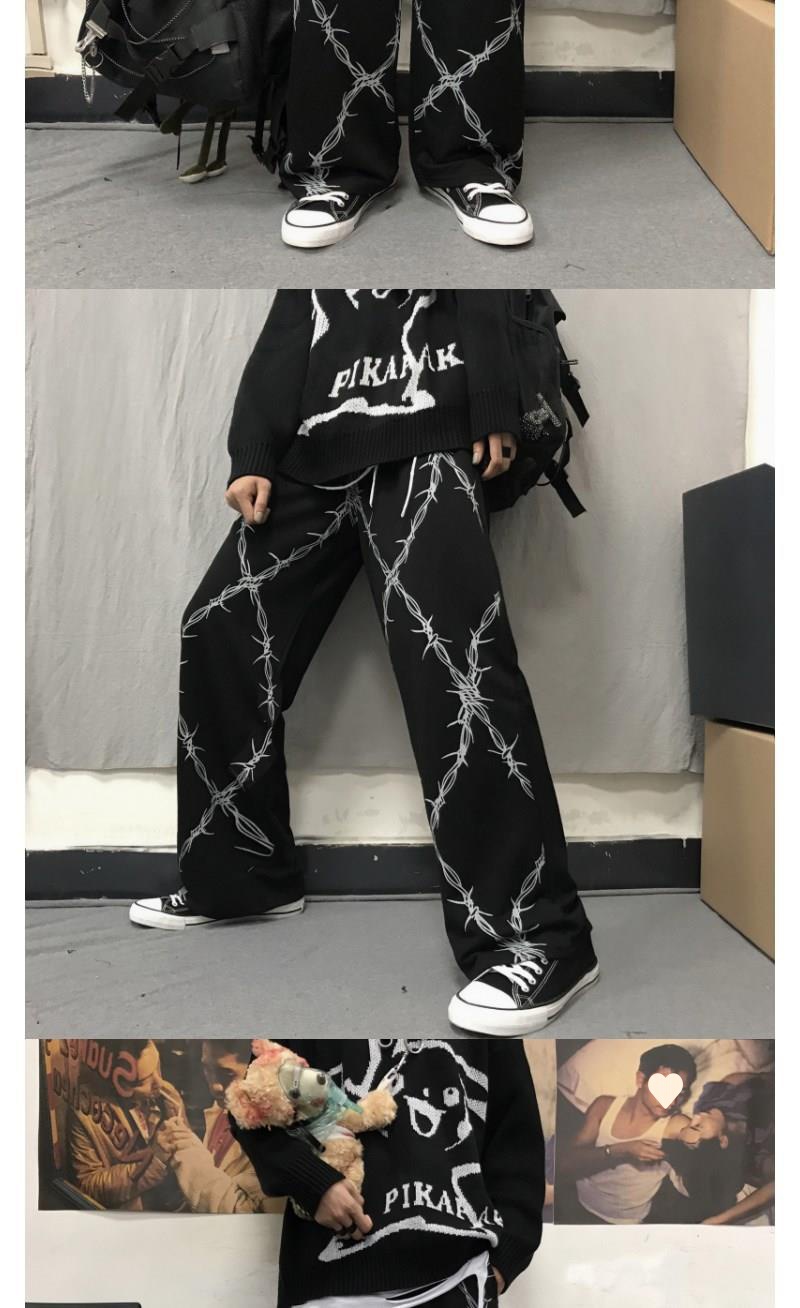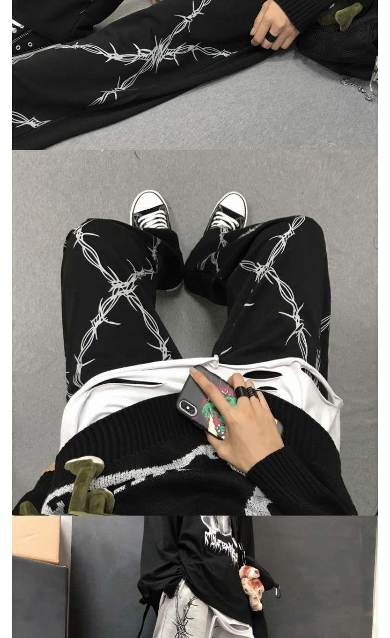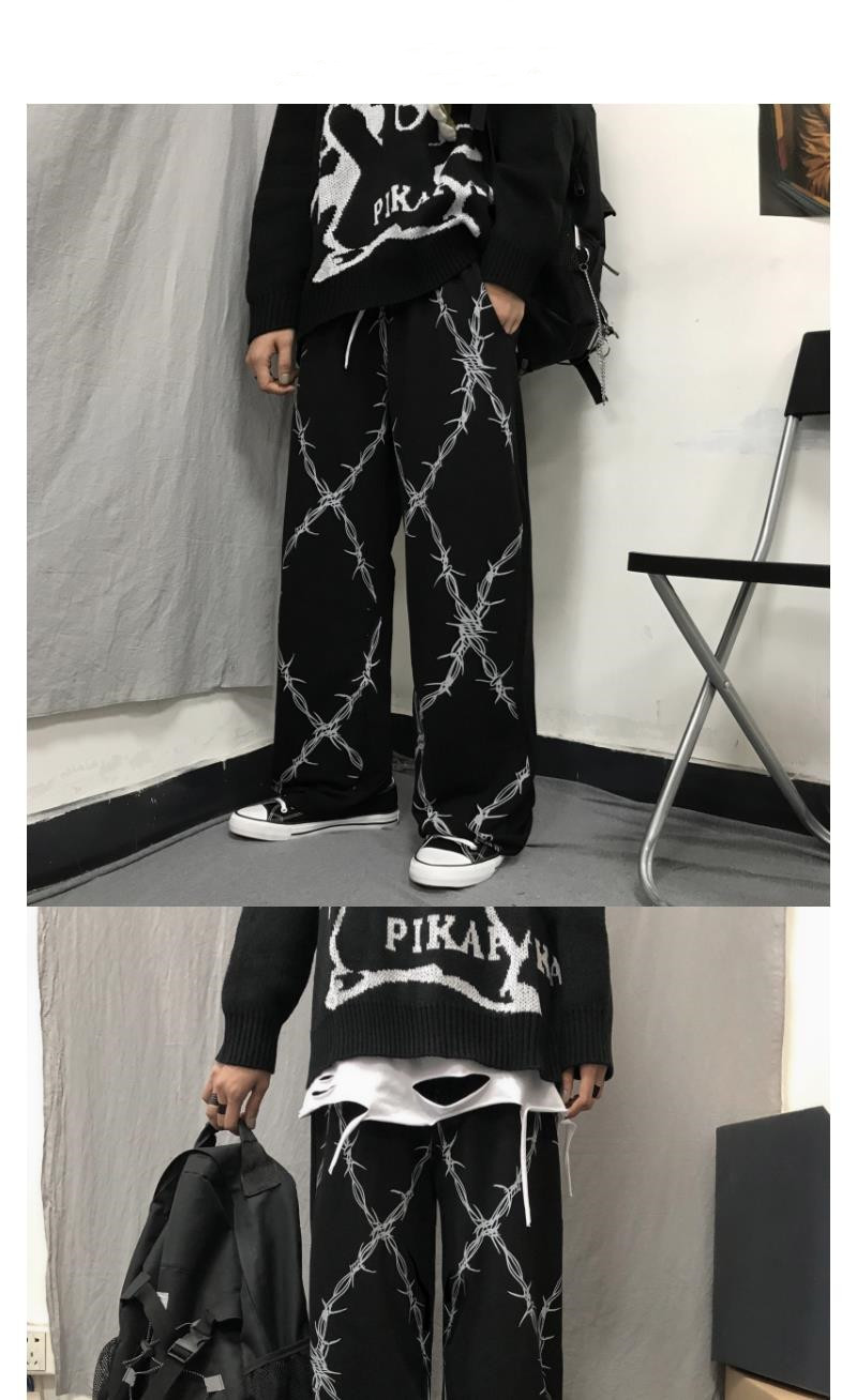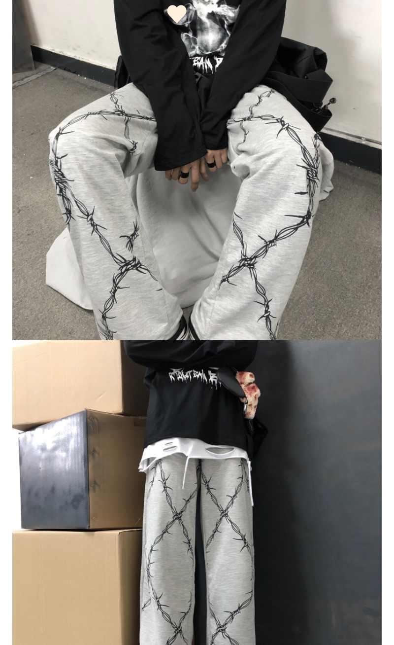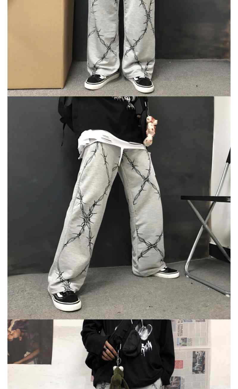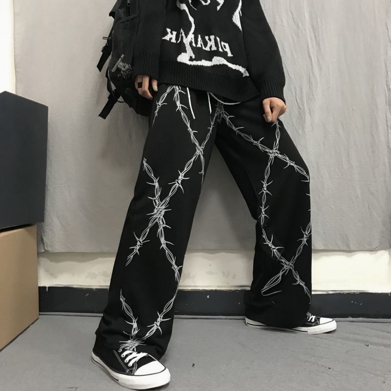 한국식 하라주쿠 레트로 디아블로 맞춤형 인쇄 캐주얼 스트레이트 다리 바지 느슨한 높은 허리 넓은 다리 트렌디 하이 스트리트 바지스토어 가기